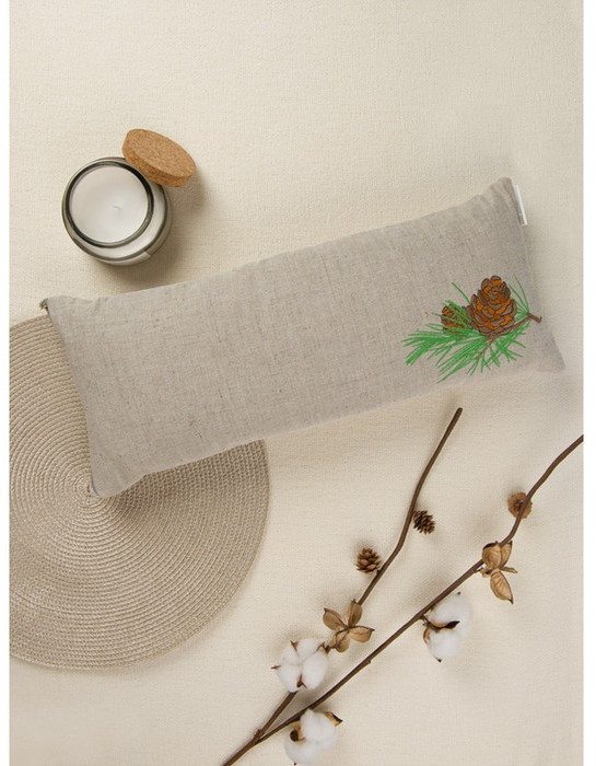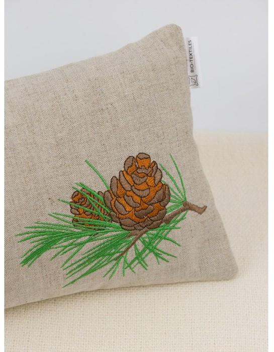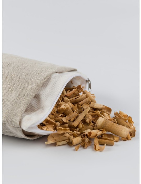 Наполнитель — кедровая стружка. её приятный аромат обладает бактерицидными свойствами и является отличной профилактикой простудных заболеваний. Он укрепляет иммунитет, снимает стресс и усталость, способствует быстрому восстановлению сил, улучшает настроение и работоспособность. Чехол изготовлен из натурального льна и украшен вышивкой. Вшитая Застёжка-молния позволяет регулировать объём наполнителя в подушке.