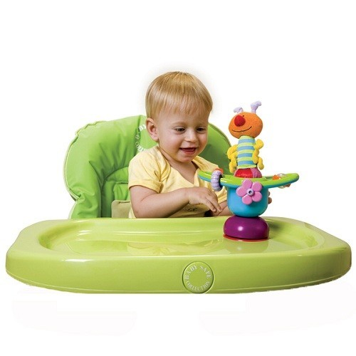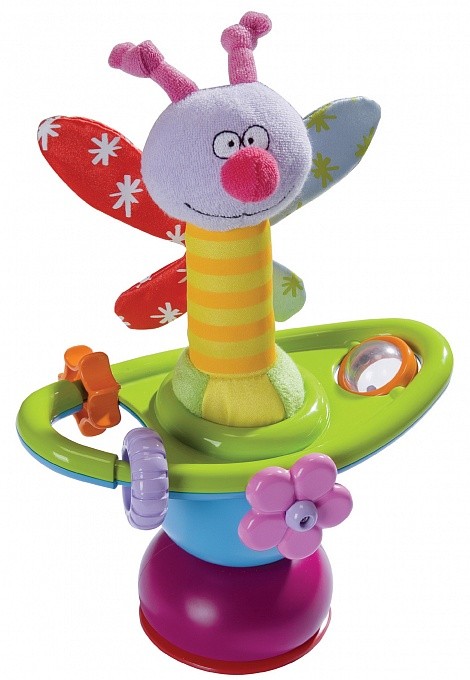 Очень понравилась каруселька на присоске, и что более чем удивило - на игрушке написано "made in Germany", а мы так привыкли к Китаю. Игрушка как бы 2 в 1, основная бабочка или гусеничка-мягкая и легко вынимается, можно играть как погремушкой, она пищит при надавливании, и гремит при встряхивании, так же у нее много лапок, которые малышу интересно рассматривать и трогать. Моей дочке понравились мелкие крутящиеся детали на карусельке, она бьет по ним ручкой и они начинают вращаться.... очень занимает ребенка.
