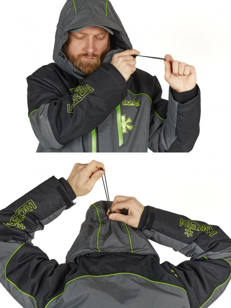 • фиксатор, стягивающий низ куртки;