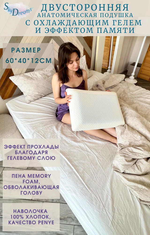SkyDreams Подушка ортопедическая двусторонняя с охлаждающим гелем и эффектом памяти «Classic Gel»
