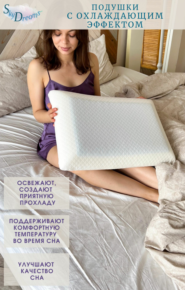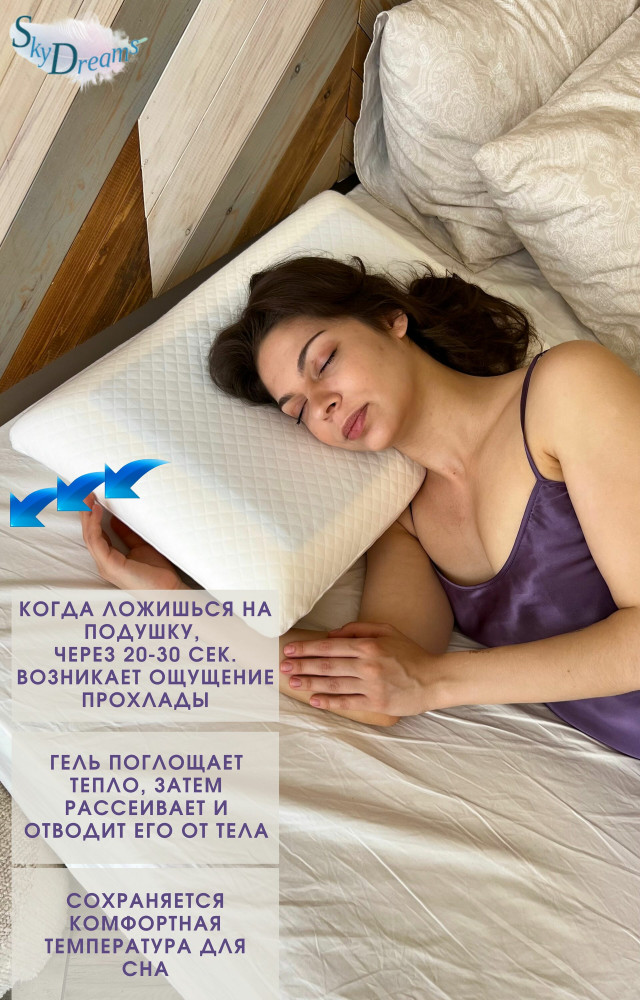 Основные преимущества ортопедических подушек SkyDreams с охлаждающим гелем: