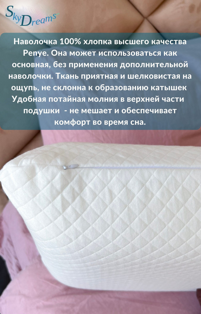 • во время сна на подушке SkyDreams отсутствует давления на мягкие ткани, что помогает сохранить молодости кожи.