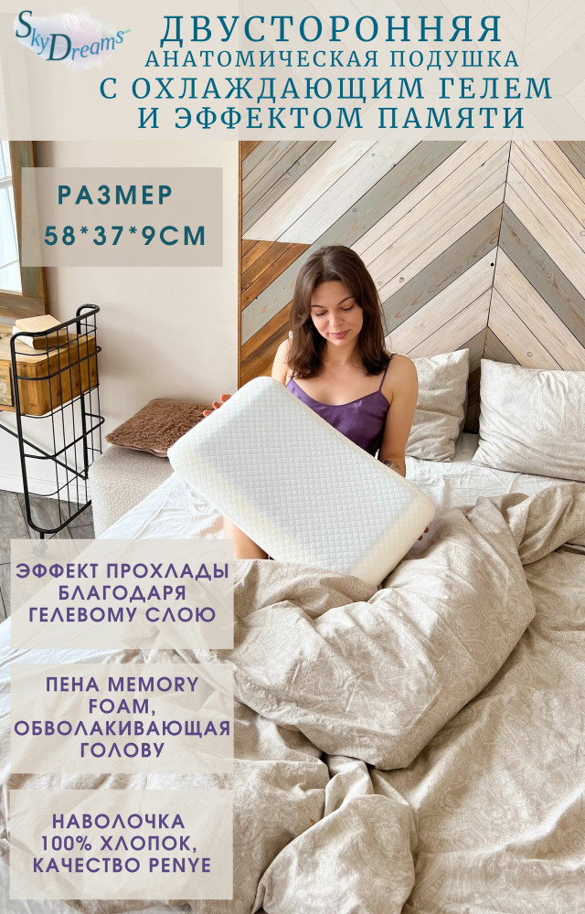 Основные преимущества ортопедических подушек SkyDreams с охлаждающим гелем:
