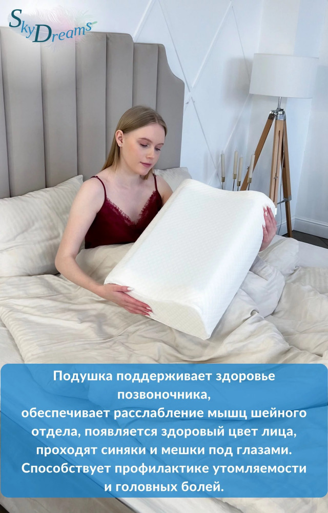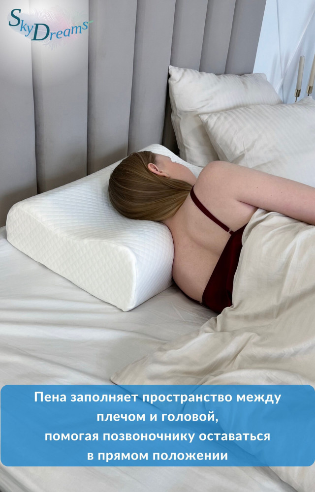 • основание из пенополиуретана средней жёсткости обеспечивает равномерную нагрузку на голову, шею и позвоночник во время сна. Пена с эффектом памяти Memory Foam повторяет изгибы человеческого тела и подстраивается под любую анатомию;