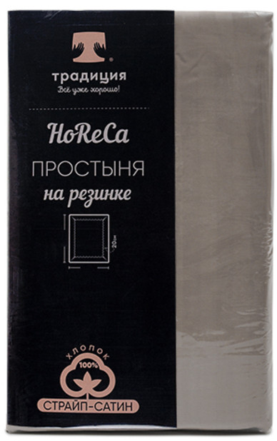Простыня на резинке «HoReCa» из однотонного страйп-сатина — 100% хлопок, плотностью 125 г/м²., полоса 1×1 см. Ткань мягкая и приятная к телу, не линяет, обладает высокой прочностью и износостойкостью. Особенностью простыни является наличие резинки, которая пришита по углам изделия. Обеспечивается надежная фиксация простыни на матрасе, простыня не сбивается и не сминается. Размер простыни подбирается согласно размеру спального места. Цвет «Серый стальной» входит в постоянную коллекцию отдельных швейных изделий линейки «HoReCa», что позволяет собрать свой эксклюзивный комплект с нужными размерами, цветом и конфигурацией.