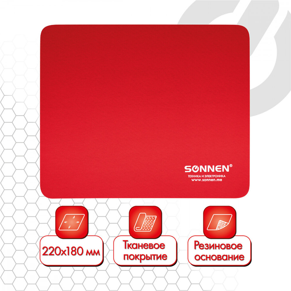 Коврик для мыши Sonnen «Red» — отличный вариант для комфортной работы в офисе и дома! Приобретайте компьютерные аксессуары Sonnen и убедитесь в этом сами!