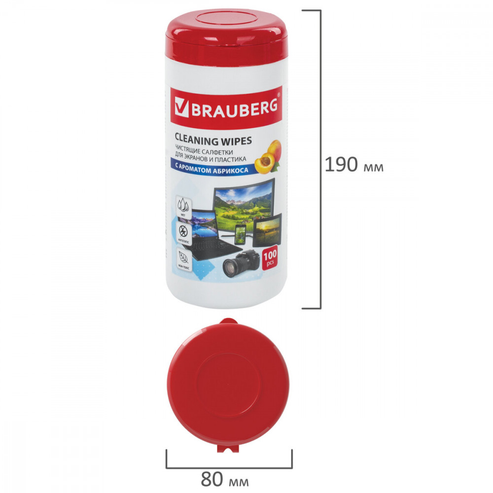 Brauberg Салфетки влажные для экранов всех типов и пластика с ароматом абрикоса-30% +39