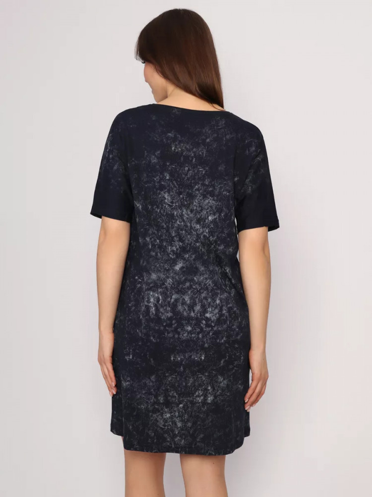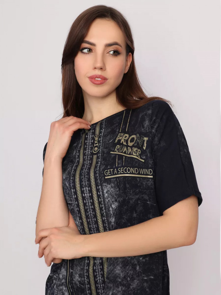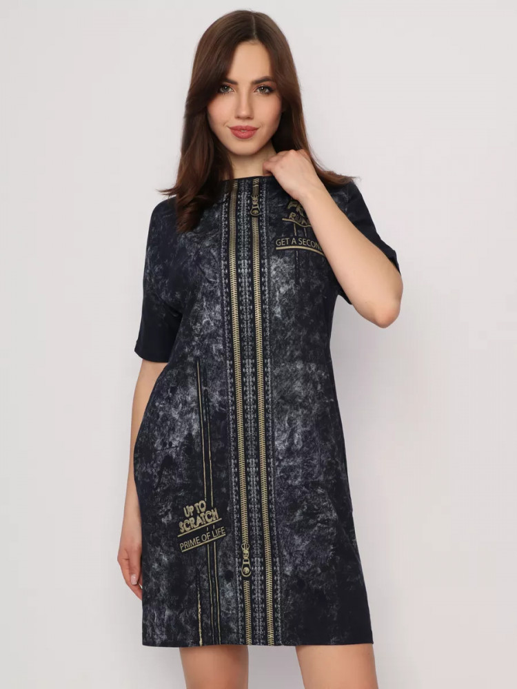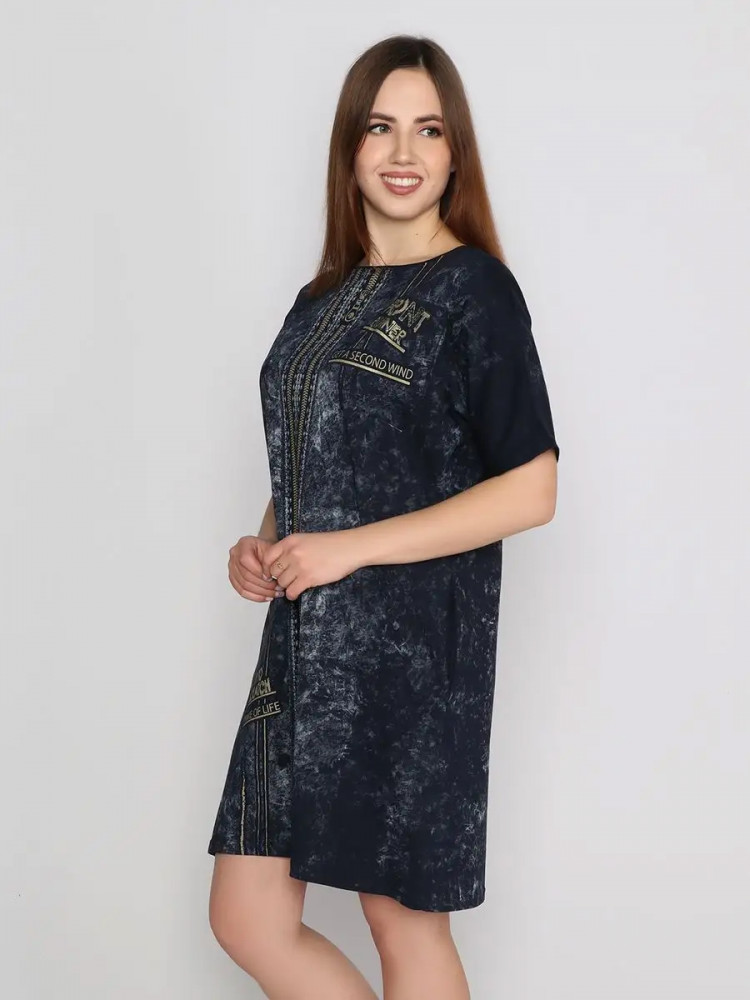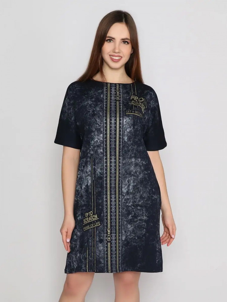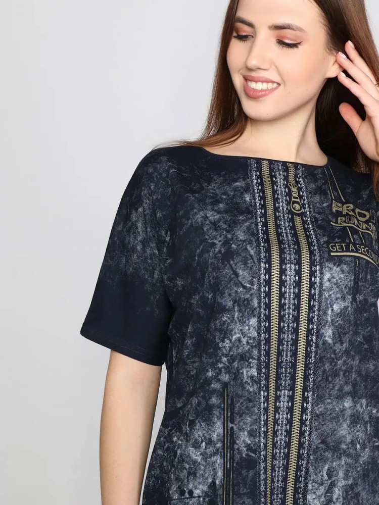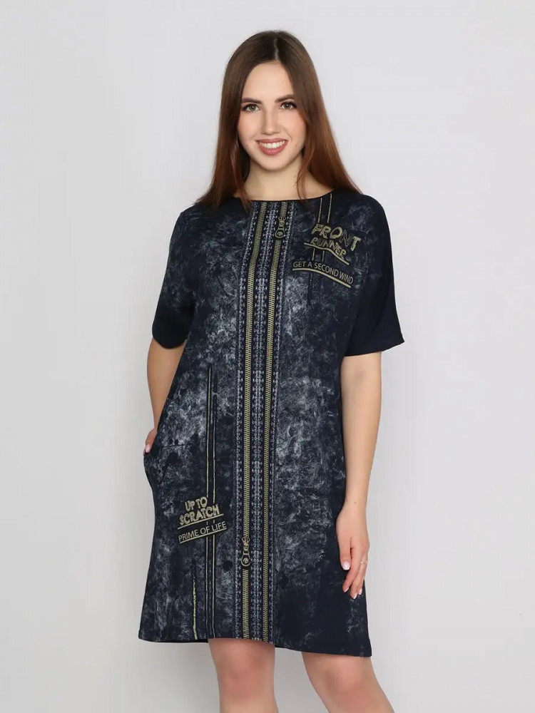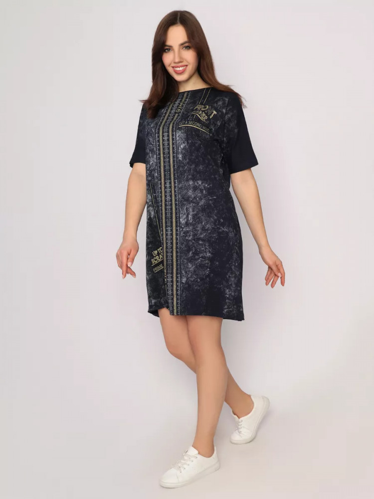 Легкое хлопковое женское платье станет незаменимым элементом гардероба и идеально подойдет для весенне-летнего сезона. Оно выполнено из легкого материала кулирка. Идеальный вариант в знойный летний день, поэтому домашнее женское платье с коротким рукавом можно носить повседневно. Оно подойдет как для занятий домашними делами, так и для прогулки по пляжу, в парке или похода в магазин. Туника имеет, округлый вырез, по бокам расположены прорезные карманы, оригинальный принт. Стильное женское платье оверсайз не вызывает дискомфорт. Благодаря свободному фасону, оно не обтянет вашу фигуру. Женское платье больших размеров понравится как молодым девушкам, так и женщинам любого возраста и телосложения. Это современная и практичная модель подойдет для высоких и невысоких девушек. Вы можете сочетать стильное, летнее женское платье с туфлями, босоножками и кедами.