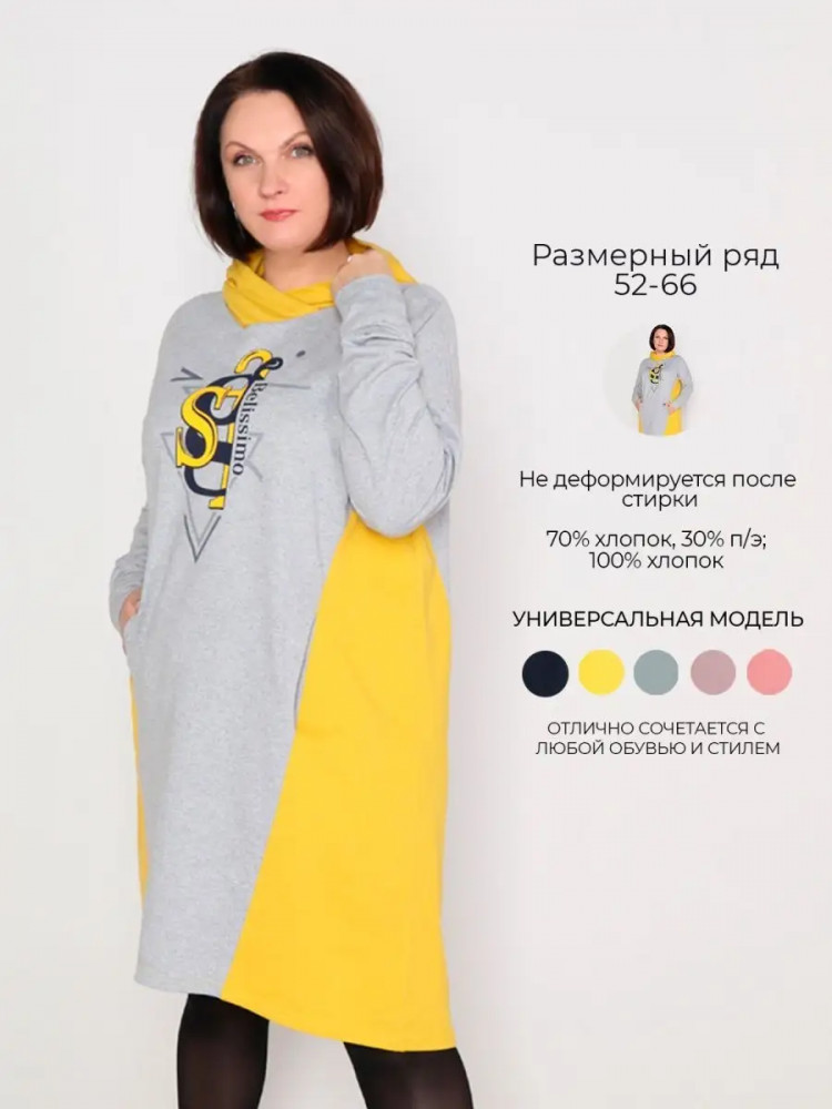 Платье очень понравилось. Сейчас в самый раз носить. Плотный и в тоже время лёгкий трикотаж, длинный рукав, то что надо. Спасибо.
