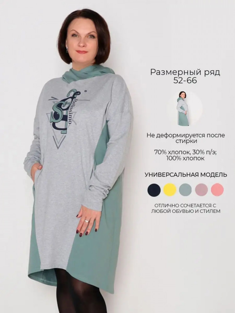 Платье очень понравилось. Сейчас в самый раз носить. Плотный и в тоже время лёгкий трикотаж, длинный рукав, то что надо. Спасибо.
