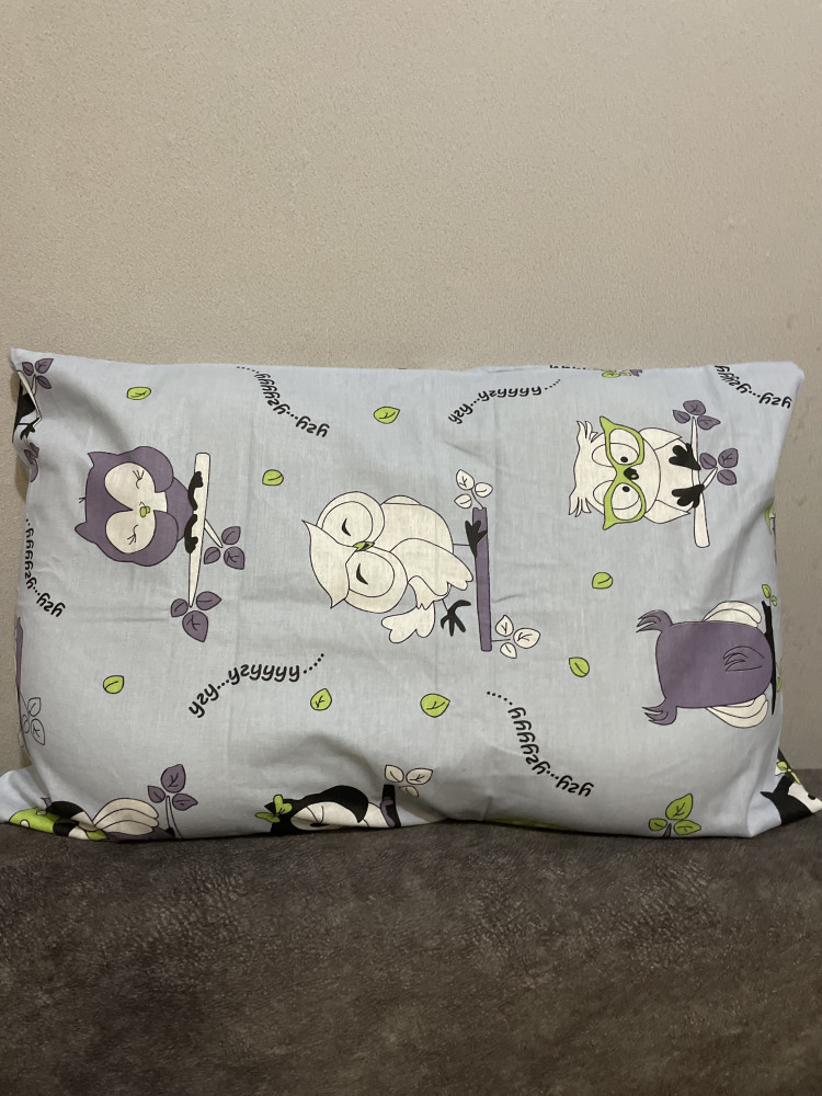 Отличная наволочка, яркая, симпатичные совы. Пахнет немного специфически, но написано в рекомендациях ее постирать. Спасибо за такой товар и ещё по такой цене!