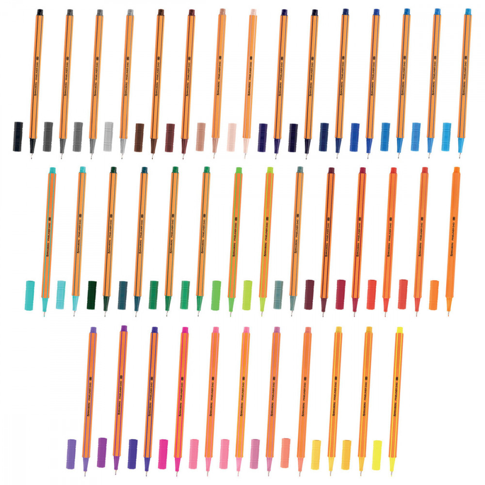 Набор капиллярных ручек «Fine 040» состоит из 40 ярких цветов: желтый, оранжевый, розовый, красный, светло-зеленый, зеленый, голубой, синий, фиолетовый, коричневый, серый, черный, сиреневый, морская волна, небесно-голубой, мятный, черное дерево, винный, светло-серый, светло-коричневый, светло-розовый, темно-синий, пурпурный, темно-серый, баклажановый, сливовый, бежевый, сине-зеленый, виноградный, маджента, янтарный, светло-желтый, сине-серый, темно-коричневый, изумрудный, травяной, бледно-розовый.