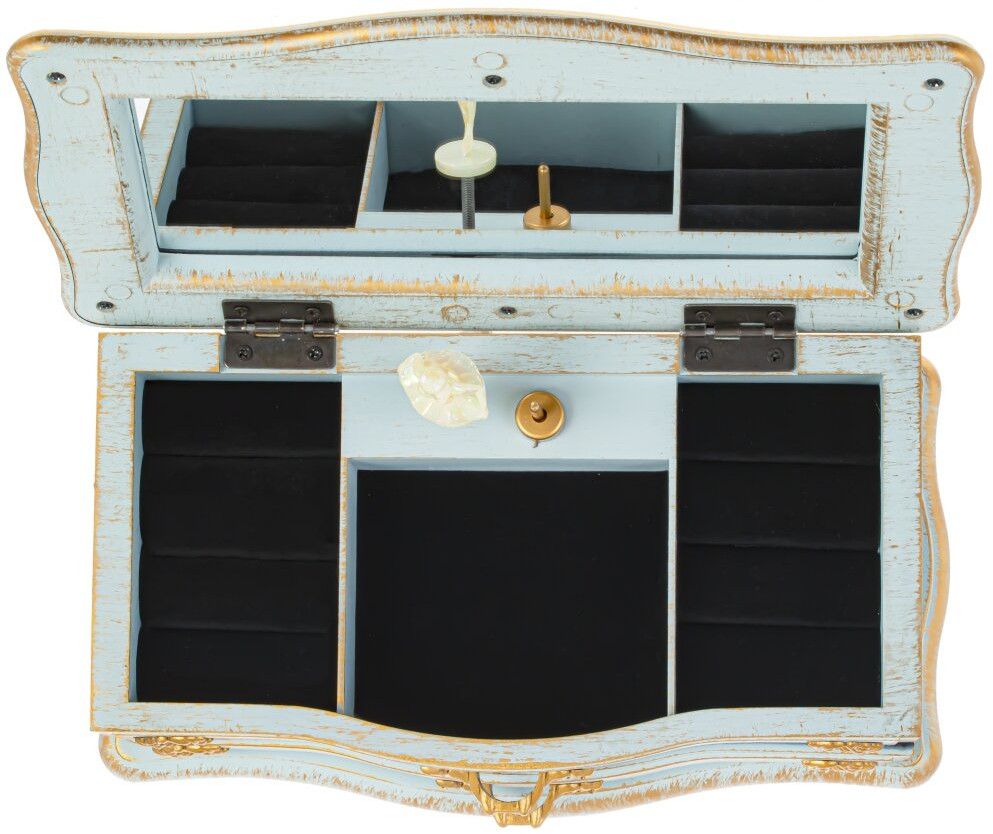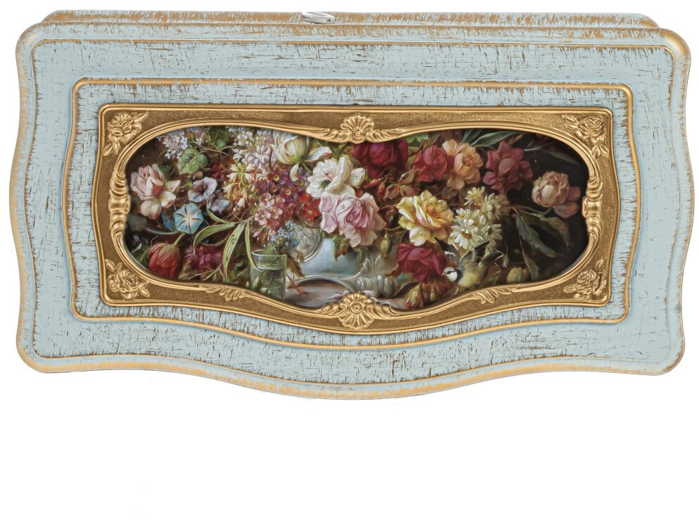Remeco club Шкатулка для украшений музыкальнаяВ данный момент этот товар отсутствует в продаже. Возможно, у нас найдется аналогичный или похожий товар здесь. Шкатулка для украшений музыкальная, в форме комода выполнена под старину. Изготовлена из полимерных материалов. Крышка декорирована цветочным рисунком, внутри с зеркалом. Имеет выдвижной ящичек. Работает от заводного ключа. |