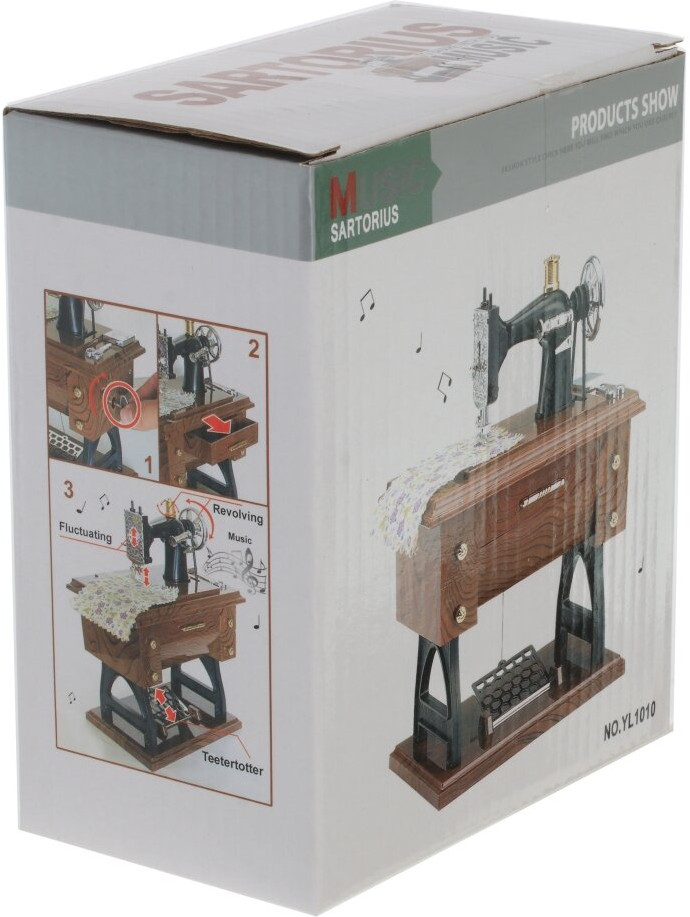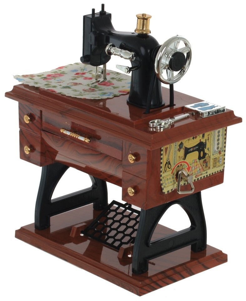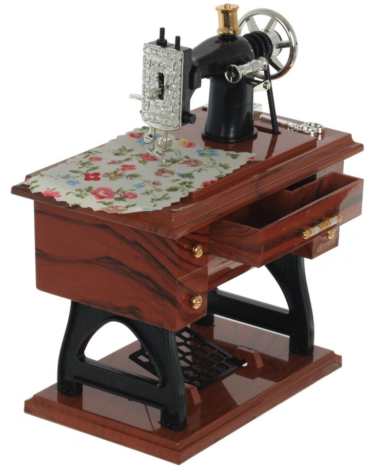 Remeco club Изделие декоративное музыкальное «Швейная машинка»В данный момент этот товар отсутствует в продаже. Возможно, у нас найдется аналогичный или похожий товар здесь. Оригинальный подарок — сувенир рукодельницам — небольшая музыкальная модель винтажной швейной машинки. При открывании ящичка , начинает играть музыка. В шкатулке можно хранить монеты, украшение и другие мелкие предметы. Работает от заводного ключа. |