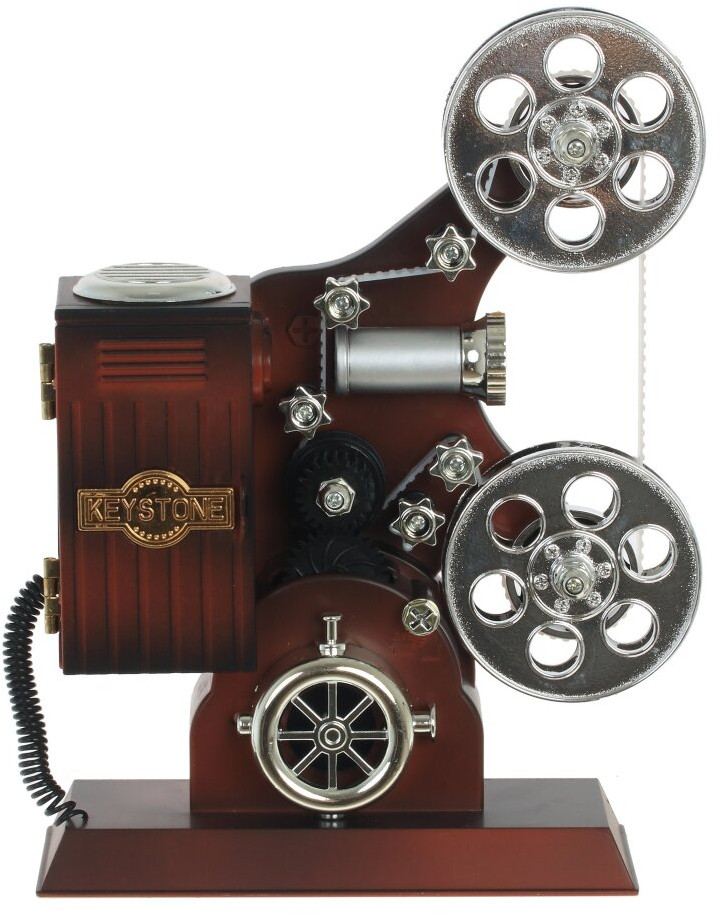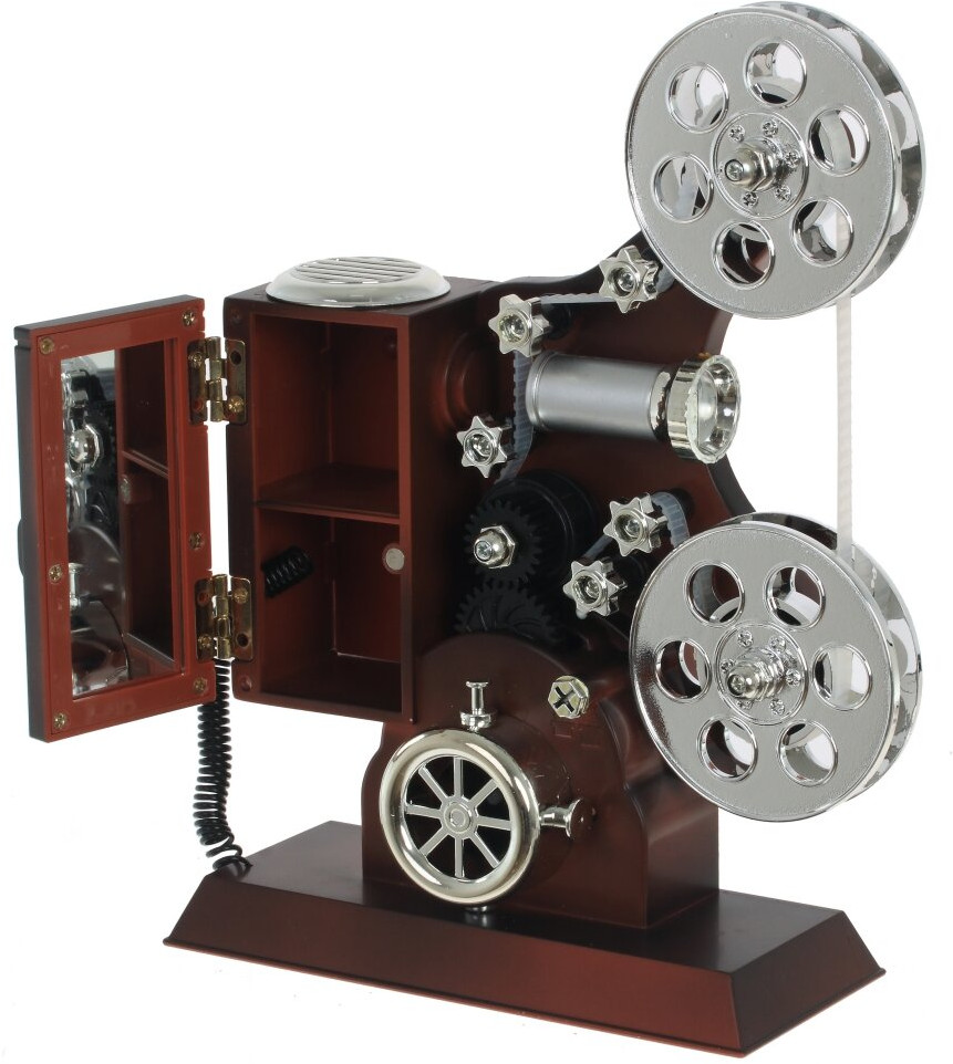 Remeco club Изделие декоративное музыкальное «Кинопроектор»В данный момент этот товар отсутствует в продаже. Возможно, у нас найдется аналогичный или похожий товар здесь. Винтажный музыкальный ретро-кинопроектор работает на заводном механизме. Есть ящик для мелочей. Необходимо повернуть ручку-ключ по часовой стрелке и зазвучит мелодичная музыка. Прекрасное украшение для дома. |
