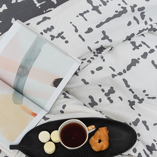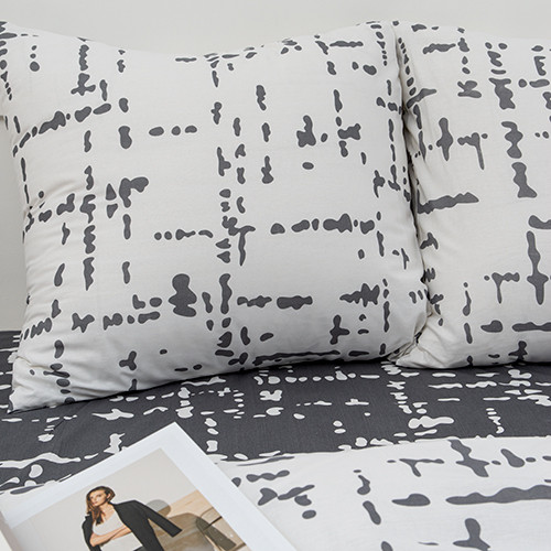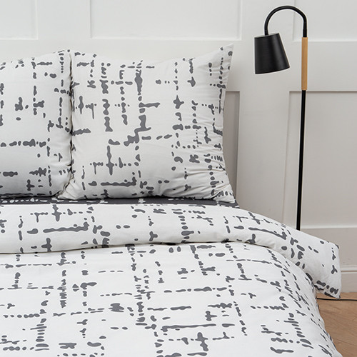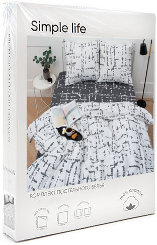 Комплект постельного белья изготовлен из набивной бязи плотностью 120 гр/кв.м. Бязь — хлопчатобумажная плотная ткань полотняного переплетения. В настоящее время бязь — основной вид тканей для пошива постельного белья. Бязевое бельё выдерживает «бесконечное» число стирок, ткань не линяет, естественная усадка не превышает норму, обладает низкой сминаемостью, качество пошива фабричного уровня. Пододеяльник имеет прорезь, наволочки — клапан, простыня содержит открытые кромки. Пододеяльник и наволочки комплекта сшиты из основной ткани, простыня из ткани-компаньона, что придает белью особый стиль.