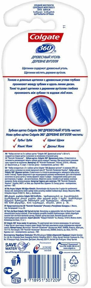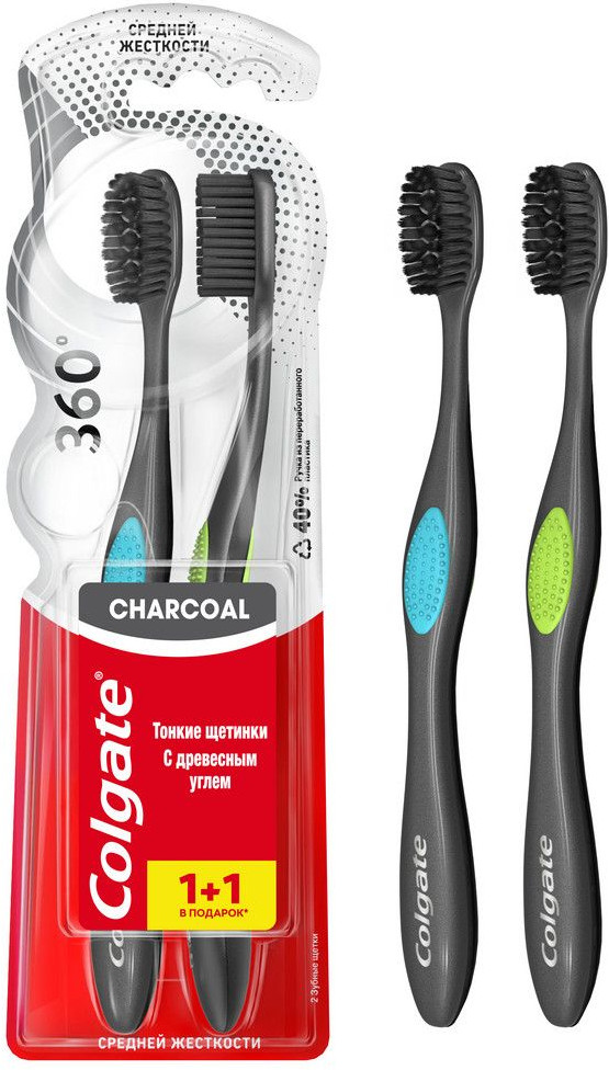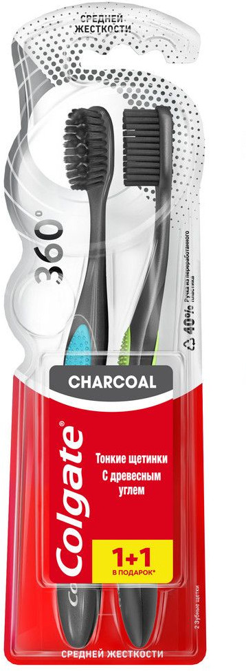 Colgate Щетка зубная «360° Древесный уголь» 1+1