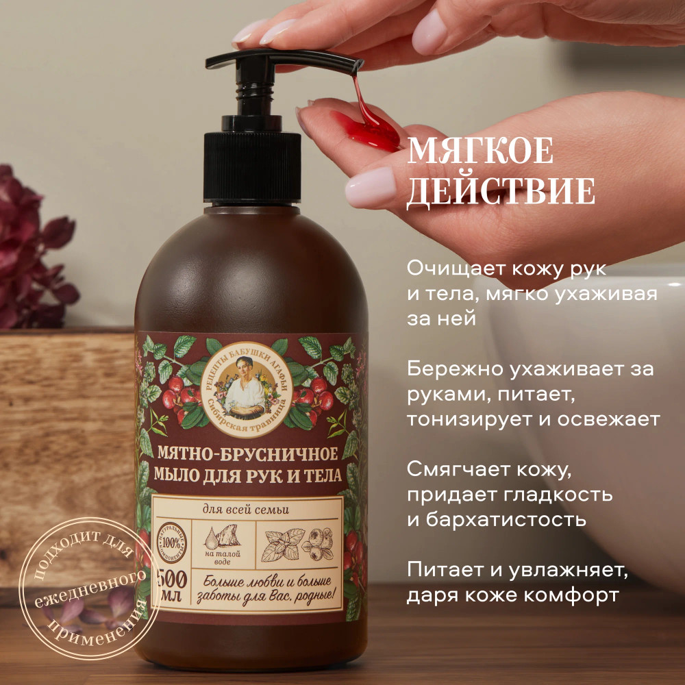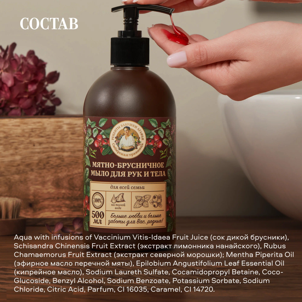 Рецепты Бабушки Агафьи Мыло для рук и тела мятно-брусничное
