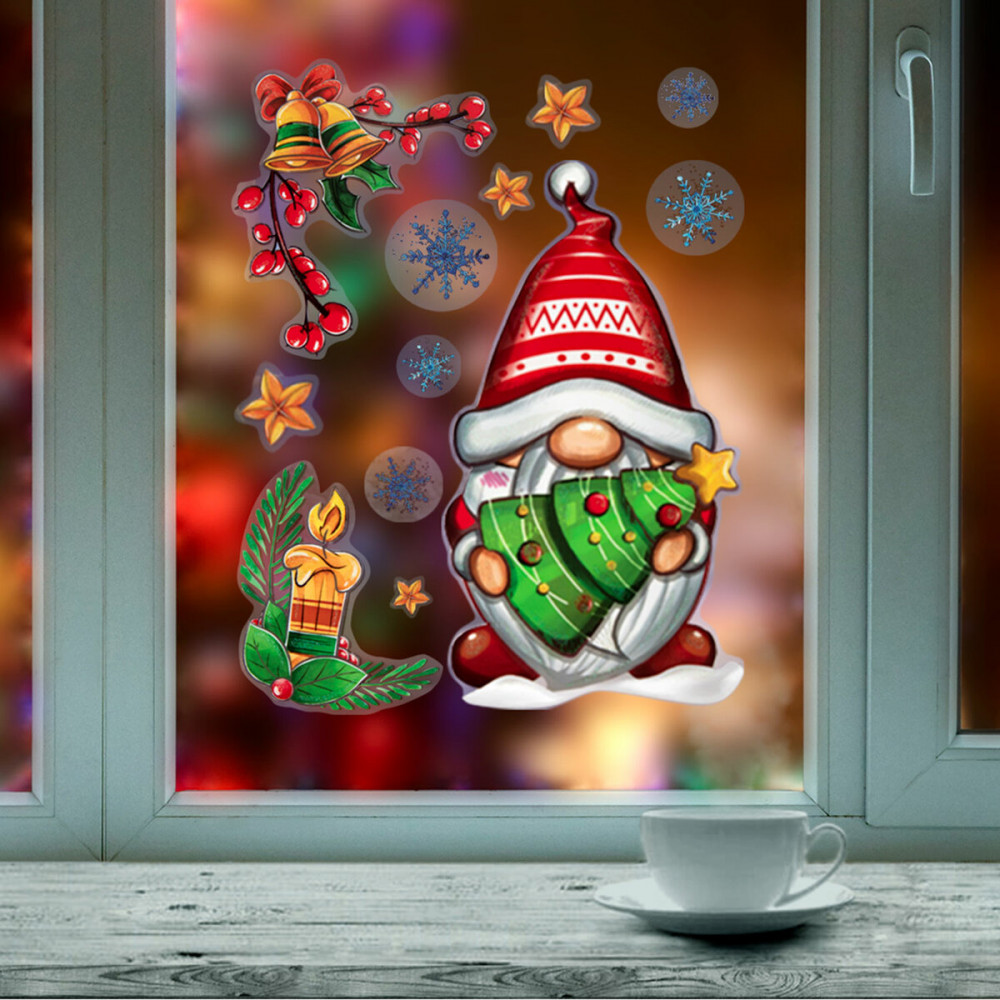 Золотая сказка Наклейки для окон многоразовые двусторонние «Рождественский гном»-20% +24 яркий рисунок хорошо держатся на стекле многоразовые подходящий размер