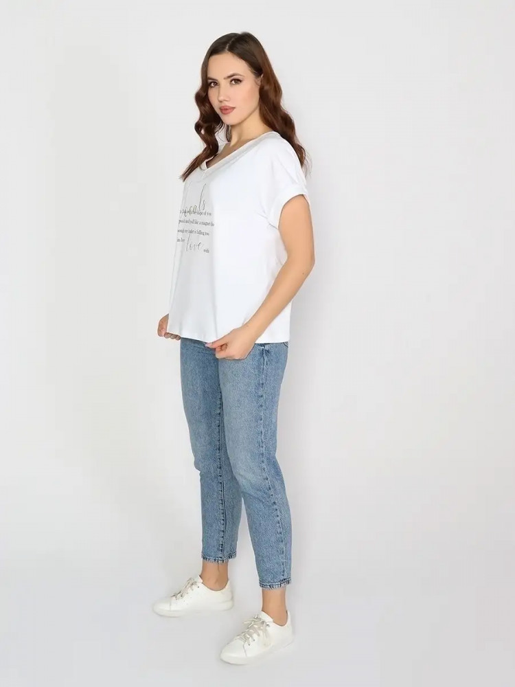 Наш бренд Fashion Margo - это идеальный выбор для любой дамы, которая хочет выглядеть стильно и привлекательно в любое время года. Футболка изготовлена из мягкой плотной натуральной хлопковой ткани, которая обеспечивает комфорт и свободу движений. Материал дышащий, приятный к коже, прочный, хорошо сохраняет форму, не садится после стирки (при соблюдении рекомендаций по уходу). Кроме того, материал не выгорает на солнце, это отличный выбор для тренировок летом, а также солнечной теплой весной или осенью. Фактура тонкой ткани трикотажная, гладкая и нежная. Страна производства Россия. Вещь универсальная, подходит для весенних, осенних и летних месяцев. Покрой удлиненный, не слишком короткий, свободный, на худых будет смотреться как легкий оверсайз. Просторный крой не стесняет движения. Она подойдет даже будущим мамам, девушкам с пышными форами и кормящим женщинам. Вырез горловин классический. В нашем магазине вы найдете эту модель в размерах от 44 до 68. Широкий размерный ряд позволяет выбрать подходящую модель женщине любого телосложения. Крутая однотонная туника с рисунком будет классно смотреться как на высокой, так и на невысокой девушке. Модная футболка идеально подходит для девочек - подростков, взрослых девочек и даже бабушек, которые хотят выглядеть красиво в школе, на офисной работе или во время прогулок на улице. Футболочка нарядная также хороша для спортивных занятий, таких как: фитнес, йога, танцы, бег, тренировки в спортзале, школьные уроки физкультуры и многое другое. Это прекрасная вещь для повседневной носки, а также для особых случаев, таких как фотосессии. Изделие можно носить дома, на даче или пляже. Милая модная стильная современная из хлопка - это классика женской моды, которая должна быть в гардеробе каждой. Трендовая туничка поможет создать прикольный образ в уличном стиле, подходящий на все случаи жизни.