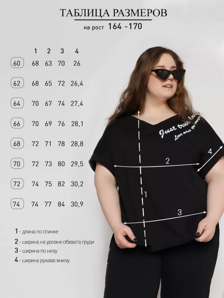 Наш бренд Fashion Margo - это идеальный выбор для любой дамы, которая хочет выглядеть стильно и привлекательно в любое время года. Футболка изготовлена из мягкой плотной натуральной хлопковой ткани, которая обеспечивает комфорт и свободу движений. Материал дышащий, приятный к коже, прочный, хорошо сохраняет форму, не садится после стирки (при соблюдении рекомендаций по уходу). Кроме того, материал не выгорает на солнце, это отличный выбор для тренировок летом, а также солнечной теплой весной или осенью. Фактура тонкой ткани трикотажная, гладкая и нежная. Страна производства Россия. Вещь универсальная, подходит для весенних, осенних и летних месяцев. Покрой удлиненный, не слишком короткий, свободный, на худых будет смотреться как легкий оверсайз. Просторный крой не стесняет движения. Она подойдет даже будущим мамам, девушкам с пышными форами и кормящим женщинам. Вырез горловин классический. В нашем магазине вы найдете эту модель в размерах от 44 до 68. Широкий размерный ряд позволяет выбрать подходящую модель женщине любого телосложения. Крутая однотонная туника с рисунком будет классно смотреться как на высокой, так и на невысокой девушке. Модная футболка идеально подходит для девочек - подростков, взрослых девочек и даже бабушек, которые хотят выглядеть красиво в школе, на офисной работе или во время прогулок на улице. Футболочка нарядная также хороша для спортивных занятий, таких как: фитнес, йога, танцы, бег, тренировки в спортзале, школьные уроки физкультуры и многое другое. Это прекрасная вещь для повседневной носки, а также для особых случаев, таких как фотосессии. Изделие можно носить дома, на даче или пляже. Милая модная стильная современная из хлопка - это классика женской моды, которая должна быть в гардеробе каждой. Трендовая туничка поможет создать прикольный образ в уличном стиле, подходящий на все случаи жизни.