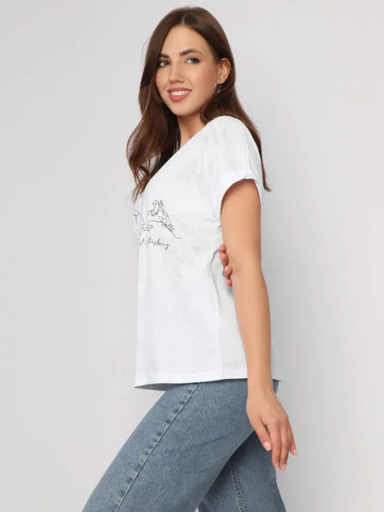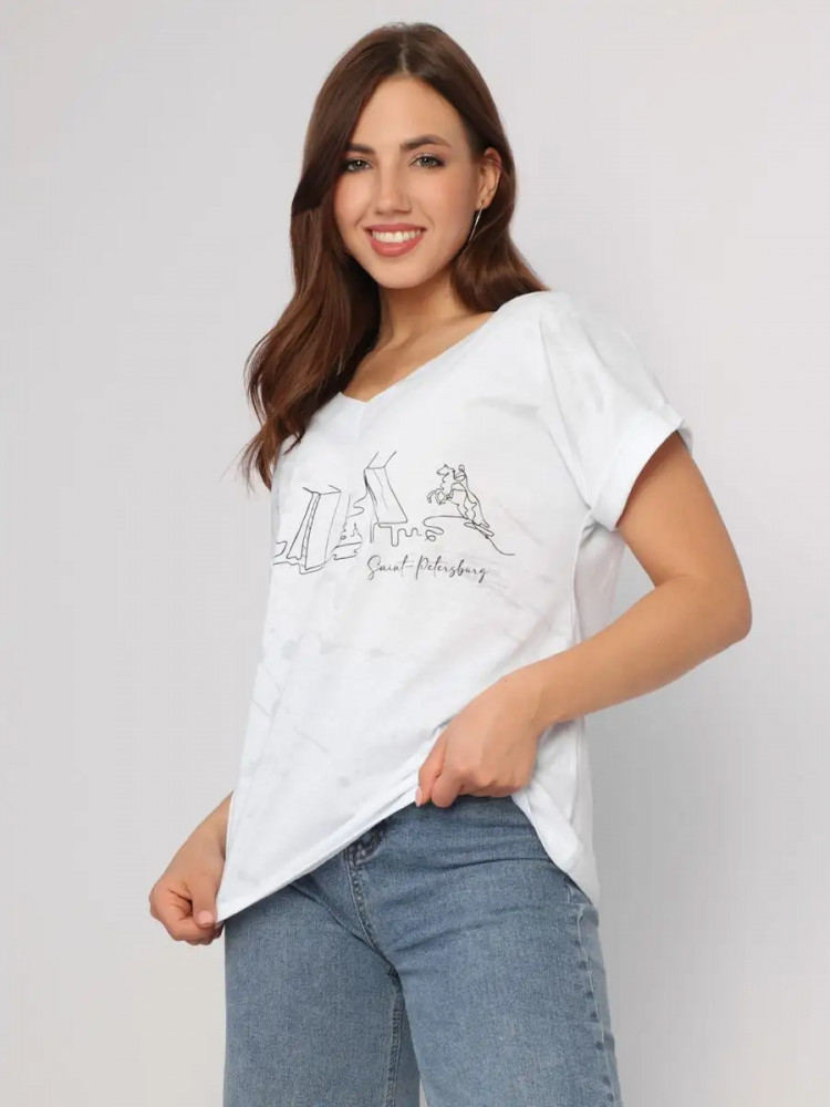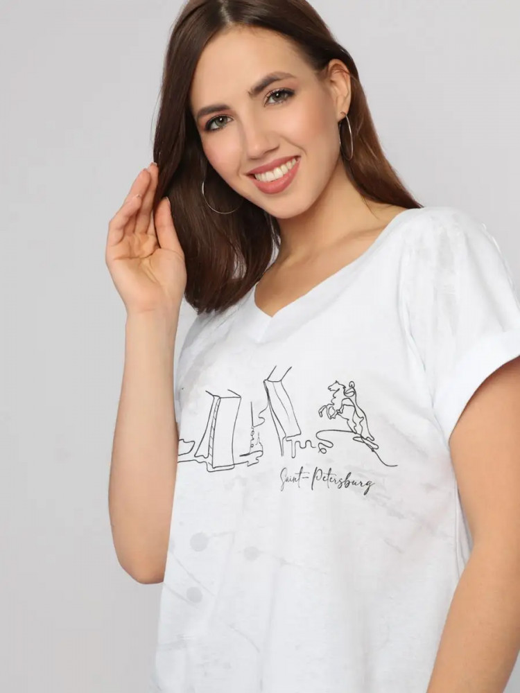 Наш бренд Fashion Margo - это идеальный выбор для любой дамы, которая хочет выглядеть стильно и привлекательно в любое время года. Футболка изготовлена из мягкой плотной натуральной хлопковой ткани, которая обеспечивает комфорт и свободу движений. Материал дышащий, приятный к коже, прочный, хорошо сохраняет форму, не садится после стирки (при соблюдении рекомендаций по уходу). Кроме того, материал не выгорает на солнце, это отличный выбор для тренировок летом, а также солнечной теплой весной или осенью. Фактура тонкой ткани трикотажная, гладкая и нежная. Страна производства Россия. Вещь универсальная, подходит для весенних, осенних и летних месяцев. Покрой удлиненный, не слишком короткий, свободный, на худых будет смотреться как легкий оверсайз. Просторный крой не стесняет движения. Она подойдет даже будущим мамам, девушкам с пышными форами и кормящим женщинам. Вырез горловин классический. В нашем магазине вы найдете эту модель в размерах от 44 до 68. Широкий размерный ряд позволяет выбрать подходящую модель женщине любого телосложения. Крутая однотонная туника с рисунком будет классно смотреться как на высокой, так и на невысокой девушке. Модная футболка идеально подходит для девочек - подростков, взрослых девочек и даже бабушек, которые хотят выглядеть красиво в школе, на офисной работе или во время прогулок на улице. Футболочка нарядная также хороша для спортивных занятий, таких как: фитнес, йога, танцы, бег, тренировки в спортзале, школьные уроки физкультуры и многое другое. Это прекрасная вещь для повседневной носки, а также для особых случаев, таких как фотосессии. Изделие можно носить дома, на даче или пляже. Милая модная стильная современная из хлопка - это классика женской моды, которая должна быть в гардеробе каждой. Трендовая туничка поможет создать прикольный образ в уличном стиле, подходящий на все случаи жизни.