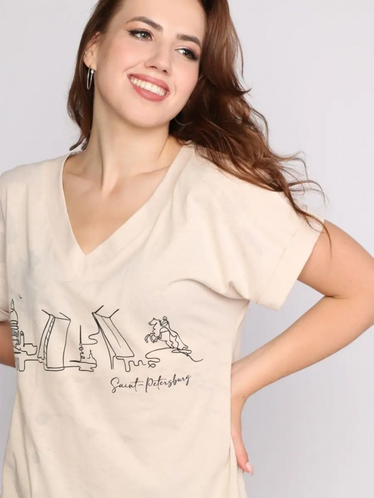Наш бренд Fashion Margo - это идеальный выбор для любой дамы, которая хочет выглядеть стильно и привлекательно в любое время года. Футболка изготовлена из мягкой плотной натуральной хлопковой ткани, которая обеспечивает комфорт и свободу движений. Материал дышащий, приятный к коже, прочный, хорошо сохраняет форму, не садится после стирки (при соблюдении рекомендаций по уходу). Кроме того, материал не выгорает на солнце, это отличный выбор для тренировок летом, а также солнечной теплой весной или осенью. Фактура тонкой ткани трикотажная, гладкая и нежная. Страна производства Россия. Вещь универсальная, подходит для весенних, осенних и летних месяцев. Покрой удлиненный, не слишком короткий, свободный, на худых будет смотреться как легкий оверсайз. Просторный крой не стесняет движения. Она подойдет даже будущим мамам, девушкам с пышными форами и кормящим женщинам. Вырез горловин классический. В нашем магазине вы найдете эту модель в размерах от 44 до 68. Широкий размерный ряд позволяет выбрать подходящую модель женщине любого телосложения. Крутая однотонная туника с рисунком будет классно смотреться как на высокой, так и на невысокой девушке. Модная футболка идеально подходит для девочек - подростков, взрослых девочек и даже бабушек, которые хотят выглядеть красиво в школе, на офисной работе или во время прогулок на улице. Футболочка нарядная также хороша для спортивных занятий, таких как: фитнес, йога, танцы, бег, тренировки в спортзале, школьные уроки физкультуры и многое другое. Это прекрасная вещь для повседневной носки, а также для особых случаев, таких как фотосессии. Изделие можно носить дома, на даче или пляже. Милая модная стильная современная из хлопка - это классика женской моды, которая должна быть в гардеробе каждой. Трендовая туничка поможет создать прикольный образ в уличном стиле, подходящий на все случаи жизни.