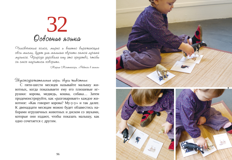 Моей дочери 1 год и 4 месяца. Думали, ходить в центры Монтессори, но с транспортом проблема. Обрадовались, когда увидела эту книгу на сайте и огорчилась, когда получила. Книга опирается на игрушки Монтессори. Все занятия для детей до года. Нам наверно стр 4 посвящены и то эта информация, которую я и так знаю. Есть схемы мобили, которую можно сделать самим из под ручных средств. В этом отношении может экономно, так как одна мобильный в среднем 3000 тг стоит, а здесь 3-4 за 2000 тг.оставила может если будет второй может понадобиться, да и с возвратом не хочу возиться.