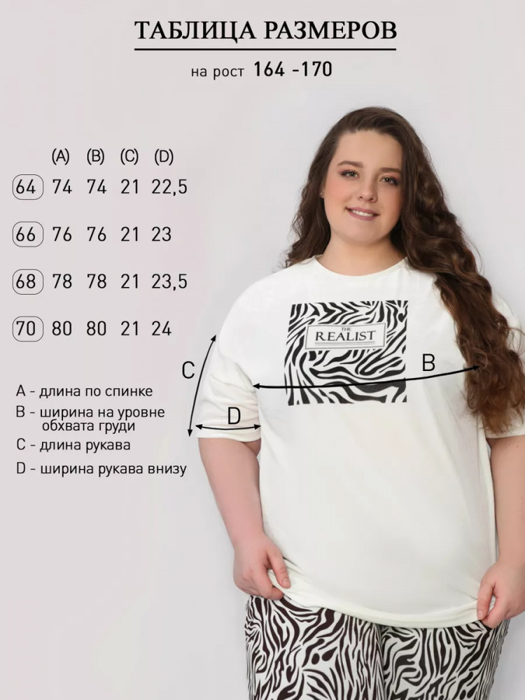 Наш бренд Fashion Margo - это идеальный выбор для любой дамы, которая хочет выглядеть стильно и привлекательно в любое время года. Футболка изготовлена из мягкой плотной натуральной хлопковой ткани, которая обеспечивает комфорт и свободу движений. Материал дышащий, приятный к коже, прочный, хорошо сохраняет форму, не садится после стирки (при соблюдении рекомендаций по уходу). Кроме того, материал не выгорает на солнце, это отличный выбор для тренировок летом, а также солнечной теплой весной или осенью. Фактура тонкой ткани трикотажная, гладкая и нежная. Страна производства Россия. Вещь универсальная, подходит для весенних, осенних и летних месяцев. Покрой удлиненный, не слишком короткий, свободный, на худых будет смотреться как легкий оверсайз. Просторный крой не стесняет движения. Она подойдет даже будущим мамам, девушкам с пышными форами и кормящим женщинам. Вырез горловин классический. В нашем магазине вы найдете эту модель в размерах от 44 до 68. Широкий размерный ряд позволяет выбрать подходящую модель женщине любого телосложения. Крутая однотонная туника с рисунком будет классно смотреться как на высокой, так и на невысокой девушке. Модная футболка идеально подходит для девочек - подростков, взрослых девочек и даже бабушек, которые хотят выглядеть красиво в школе, на офисной работе или во время прогулок на улице. Футболочка нарядная также хороша для спортивных занятий, таких как: фитнес, йога, танцы, бег, тренировки в спортзале, школьные уроки физкультуры и многое другое. Это прекрасная вещь для повседневной носки, а также для особых случаев, таких как фотосессии. Изделие можно носить дома, на даче или пляже. Милая модная стильная современная из хлопка - это классика женской моды, которая должна быть в гардеробе каждой. Трендовая туничка поможет создать прикольный образ в уличном стиле, подходящий на все случаи жизни.
