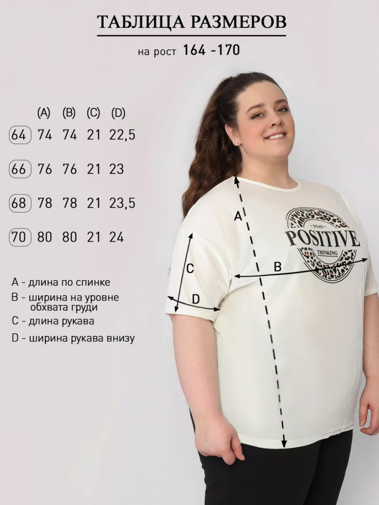 Наш бренд Fashion Margo - это идеальный выбор для любой дамы, которая хочет выглядеть стильно и привлекательно в любое время года. Футболка изготовлена из мягкой плотной натуральной хлопковой ткани, которая обеспечивает комфорт и свободу движений. Материал дышащий, приятный к коже, прочный, хорошо сохраняет форму, не садится после стирки (при соблюдении рекомендаций по уходу). Кроме того, материал не выгорает на солнце, это отличный выбор для тренировок летом, а также солнечной теплой весной или осенью. Фактура тонкой ткани трикотажная, гладкая и нежная. Страна производства Россия. Вещь универсальная, подходит для весенних, осенних и летних месяцев. Покрой удлиненный, не слишком короткий, свободный, на худых будет смотреться как легкий оверсайз. Просторный крой не стесняет движения. Она подойдет даже будущим мамам, девушкам с пышными форами и кормящим женщинам. Вырез горловин классический. В нашем магазине вы найдете эту модель в размерах от 44 до 68. Широкий размерный ряд позволяет выбрать подходящую модель женщине любого телосложения. Крутая однотонная туника с рисунком будет классно смотреться как на высокой, так и на невысокой девушке. Модная футболка идеально подходит для девочек - подростков, взрослых девочек и даже бабушек, которые хотят выглядеть красиво в школе, на офисной работе или во время прогулок на улице. Футболочка нарядная также хороша для спортивных занятий, таких как: фитнес, йога, танцы, бег, тренировки в спортзале, школьные уроки физкультуры и многое другое. Это прекрасная вещь для повседневной носки, а также для особых случаев, таких как фотосессии. Изделие можно носить дома, на даче или пляже. Милая модная стильная современная из хлопка - это классика женской моды, которая должна быть в гардеробе каждой. Трендовая туничка поможет создать прикольный образ в уличном стиле, подходящий на все случаи жизни.