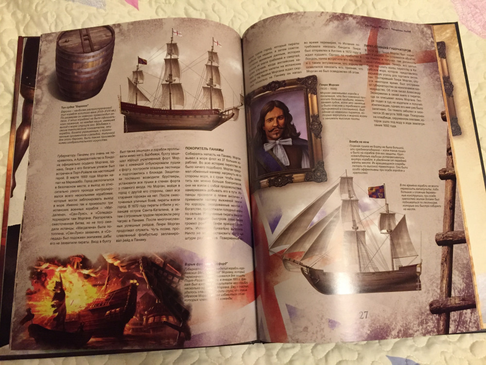 Взяла на подарки крестникам, История пиратства и Знаменитые пираты. Когда открыла, самой захотелось прочитать. Отличное качество, глянцевые и яркие страницы. Заказала второй раз обе, деткам друзей. Рекомендую !