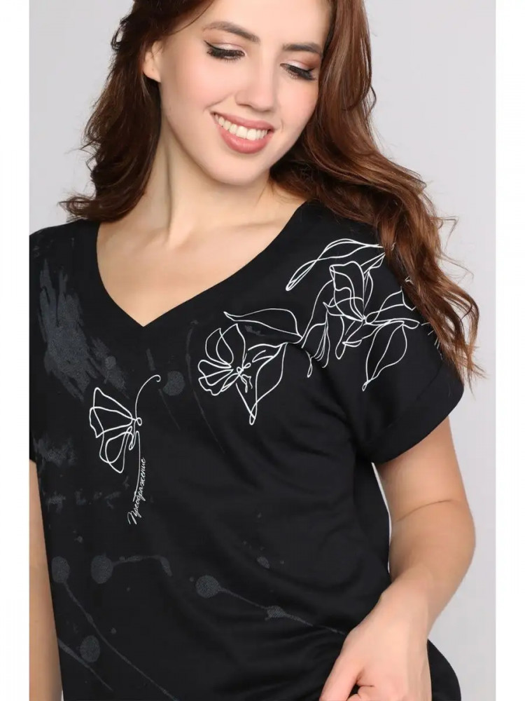 Наш бренд Fashion Margo - это идеальный выбор для любой дамы, которая хочет выглядеть стильно и привлекательно в любое время года. Футболка изготовлена из мягкой плотной натуральной хлопковой ткани, которая обеспечивает комфорт и свободу движений. Материал дышащий, приятный к коже, прочный, хорошо сохраняет форму, не садится после стирки (при соблюдении рекомендаций по уходу). Кроме того, материал не выгорает на солнце, это отличный выбор для тренировок летом, а также солнечной теплой весной или осенью. Фактура тонкой ткани трикотажная, гладкая и нежная. Страна производства Россия. Вещь универсальная, подходит для весенних, осенних и летних месяцев. Покрой удлиненный, не слишком короткий, свободный, на худых будет смотреться как легкий оверсайз. Просторный крой не стесняет движения. Она подойдет даже будущим мамам, девушкам с пышными форами и кормящим женщинам. Вырез горловин классический. В нашем магазине вы найдете эту модель в размерах от 44 до 68. Широкий размерный ряд позволяет выбрать подходящую модель женщине любого телосложения. Крутая однотонная туника с рисунком будет классно смотреться как на высокой, так и на невысокой девушке. Модная футболка идеально подходит для девочек - подростков, взрослых девочек и даже бабушек, которые хотят выглядеть красиво в школе, на офисной работе или во время прогулок на улице. Футболочка нарядная также хороша для спортивных занятий, таких как: фитнес, йога, танцы, бег, тренировки в спортзале, школьные уроки физкультуры и многое другое. Это прекрасная вещь для повседневной носки, а также для особых случаев, таких как фотосессии. Изделие можно носить дома, на даче или пляже. Милая модная стильная современная из хлопка - это классика женской моды, которая должна быть в гардеробе каждой. Трендовая туничка поможет создать прикольный образ в уличном стиле, подходящий на все случаи жизни.