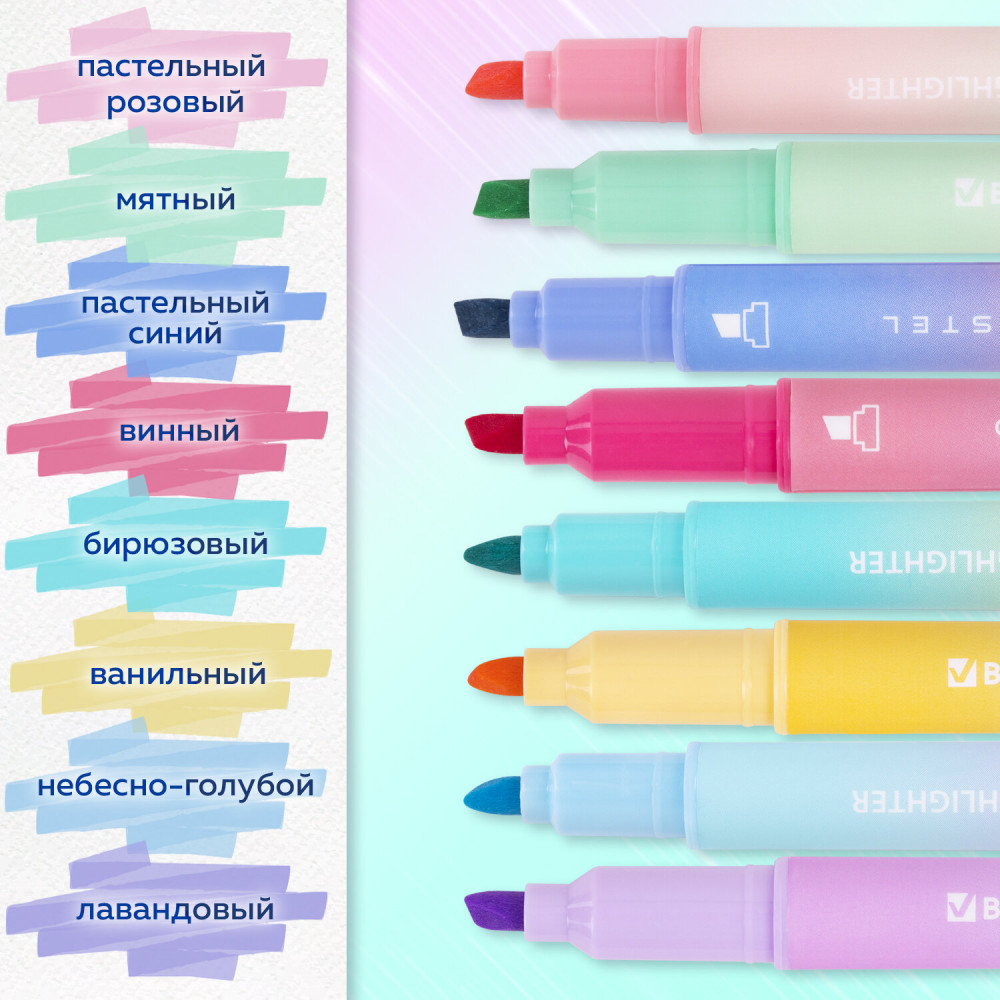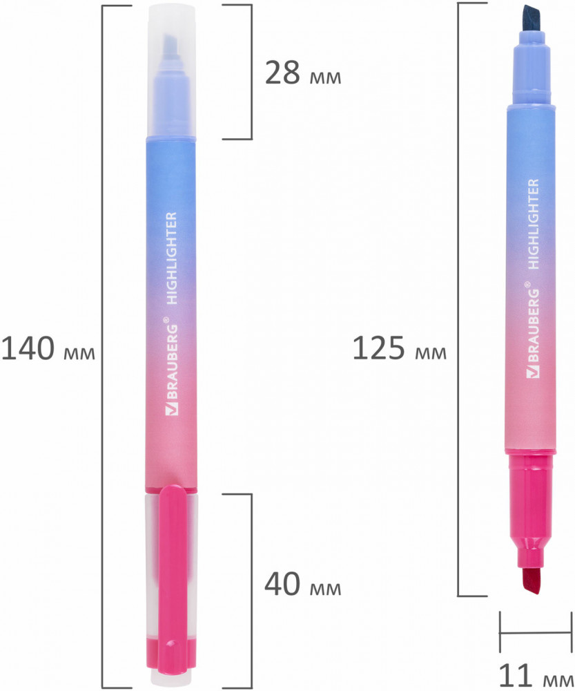 Текстовыделители двусторонние предназначены для выделения текста на бумаге любого типа, включая факс-бумагу. Идеально подходят для учебных, домашних и офисных задач. В наборе — 4 двусторонних текстовыделителя 8 пастельных цветов: лавандовый, бирюзовый, мятный, пастельный розовый, ванильный, небесно-голубой, винный и пастельный синий. Имеют корпус круглой формы диаметром 11 мм. |