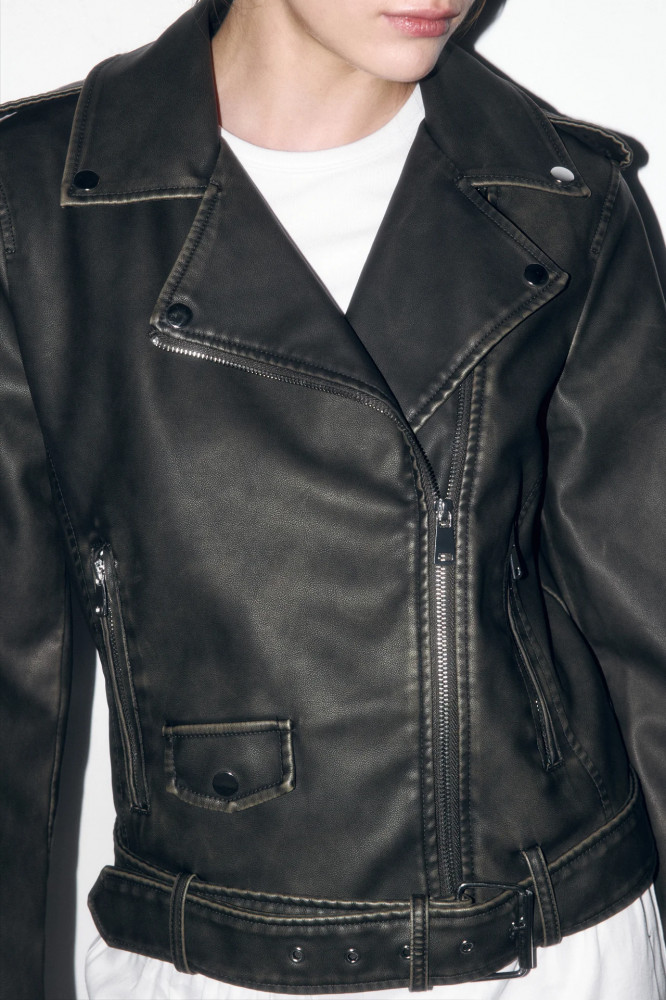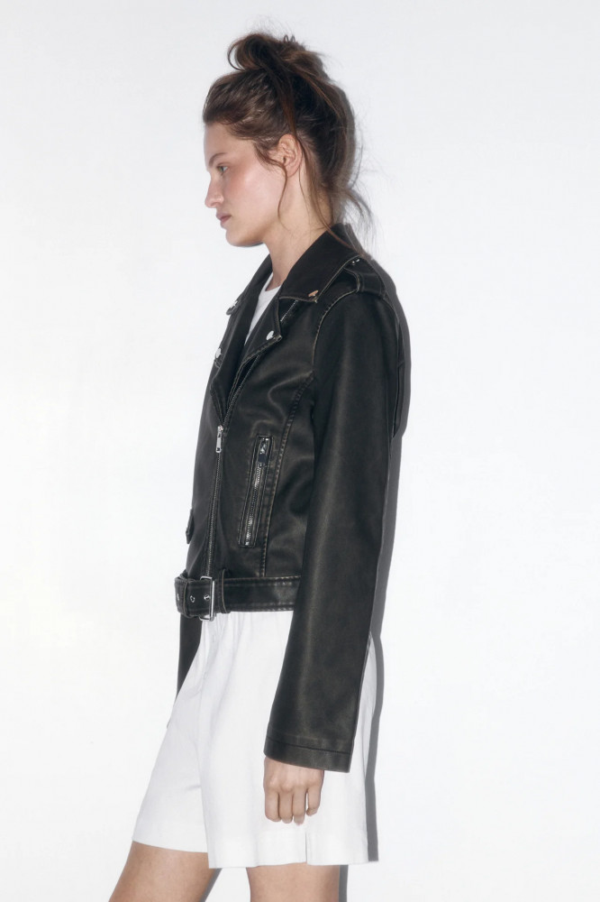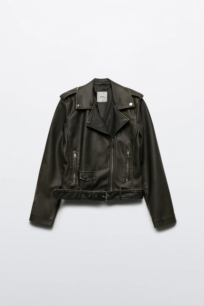 Косуха цвета хаки с кожаной фактурой и трендовым вареным эффектом для стильных аутфитов в байкерском стиле или для повседневных луков. Стильная и универсальная куртка-косуха, которая защитит тебя от ветра и дождя и подойдет как на прохладное лето, так и на раннюю осень / позднюю весну. Создавай образы в стиле гранж или панк-рок. Добавь к образам денимный рваный низ или создай тотал-лук из кожи. Закончи образ массивной обувью и стильными очками-авиаторами. Сочетай косуху с разными фактурами от шифона до кружева, чтобы подчеркнуть одновременно женственность и дерзость твоего характера.