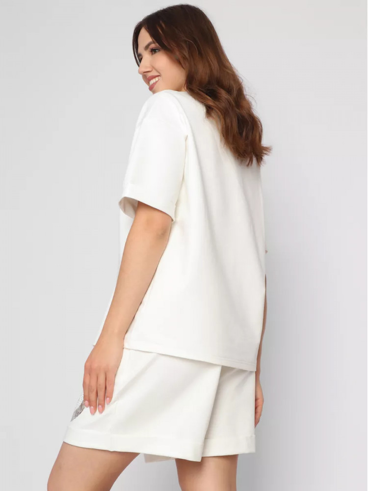 Женский базовый спортивный костюм оверсайз - одежда дополняющая гардероб каждой современной девушки. Комфортная, не стесняющая движения, удлиненная футболка оверсайз прямого кроя и шорты свободного кроя из хлопкового материала. Добавленная в состав изделия лайкра не даёт скатываться и растягиваться комплекту, хорошо поддерживает форму изделия, за счёт этого спортивный костюм меньше мнётся и выдерживает множество стирок. Комфортный комплект двойка с широкими шортами, имеющими боковые карманы, и футболкой свободного силуэта подойдет и для девушки подростка, и для взрослой женщины. Костюм с шортами подходит для любого вида спорта, для повседневного гардероба, для дома, дачи и прогулок, путешествий и активного отдыха. Спортивный костюм для физкультуры. Удобен для занятий фитнесом или йогой, для тренажёрного зала, для бега и ходьбы. Такой удобный и легкий костюм не будет сковывать движений на тренажерах, а уникальная обработка горловины исключает натирание шеи. Модель универсальна, можно носить как летний дачный или как домашний костюм, подходящий на любой сезон. В нем не будет жарко даже в самый солнечный летний день. Костюм оверсайз можно носить комплектом, а также по отдельности, сочетая с любыми частями Вашего гардероба. Футболку можно комбинировать с джинсами или спортивными лосинами, леггинсами, любыми штанами. Шорты хорошо будут сочетаться с майкой, худи или свитшотом. Костюм oversize больших размеров подойдет для любой фигуры.
