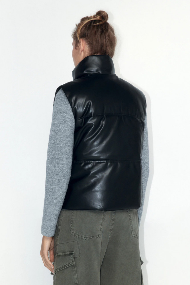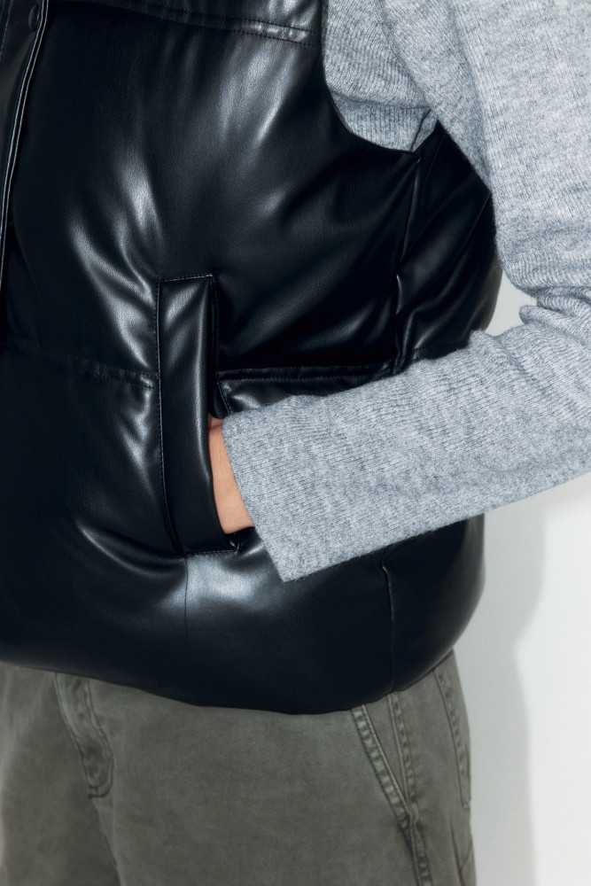 Утепленная женская жилетка с кожаной фактурой — твоя стильная дополнительная защита от ветра и холода на весну или осень для активных прогулок и занятий спортом на свежем воздухе. Сочетай эту легкую утепленную жилетку со своими любимыми кофтами и комфортным низом и создавай самые уютные, теплые и комфортные аутфиты на холодное время года. Вес утеплителя рассчитан на температуру до +5 градусов в зависимости от погодных условий региона.