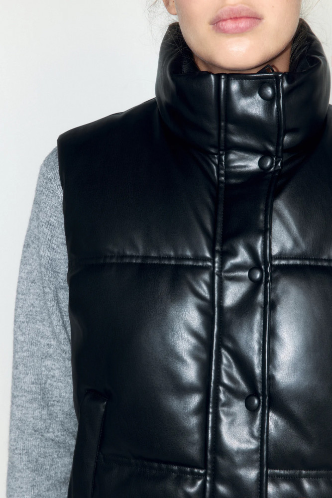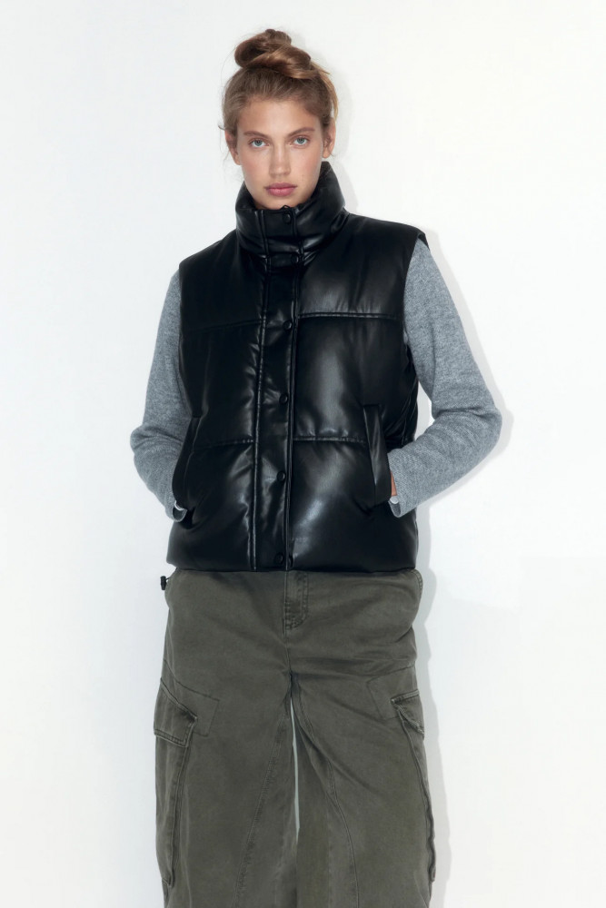 Утепленная женская жилетка с кожаной фактурой — твоя стильная дополнительная защита от ветра и холода на весну или осень для активных прогулок и занятий спортом на свежем воздухе. Сочетай эту легкую утепленную жилетку со своими любимыми кофтами и комфортным низом и создавай самые уютные, теплые и комфортные аутфиты на холодное время года. Вес утеплителя рассчитан на температуру до +5 градусов в зависимости от погодных условий региона.