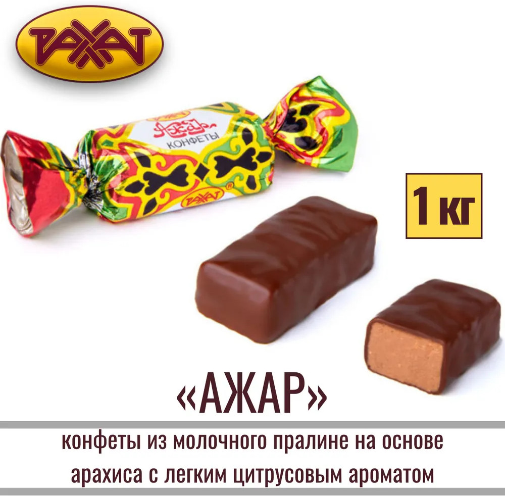 Рахат Конфеты с молочным пралине на основе арахиса в шоколадной глазури «Ажар»