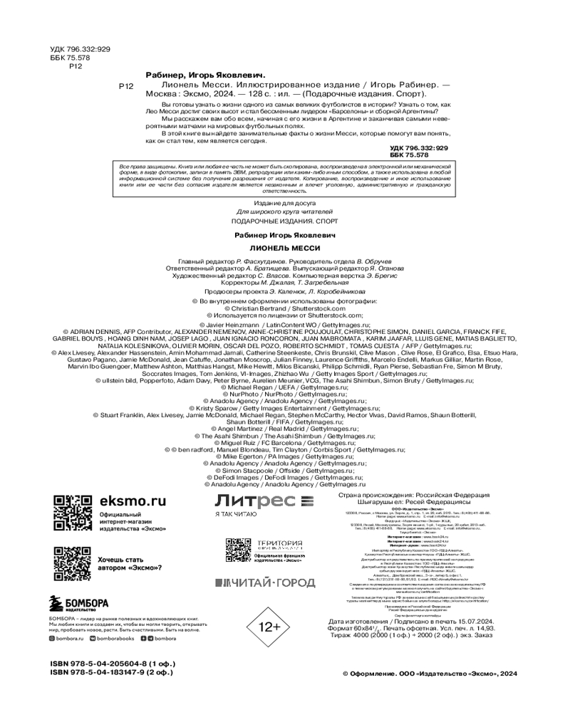 💳 Оплатить за товар можно при получении 🇰🇿 Есть бесплатная доставка по Казахстану от 1 дня 🎁 Копите бонусы с каждой покупки Серия: Подарочные издания. Спорт Вы готовы узнать о жизни одного из самых великих футболистов в истории? Узнать о том, как Лео Месси достиг своих высот и стал бессменным лидером «Барселоны» и сборной Аргентины? Мы расскажем вам обо всем, начиная с его жизни в Аргентине и заканчивая самыми невероятными матчами на мировых футбольных полях. В этой книге вы найдете занимательные факты о жизни Месси, которые помогут вам понять, как он стал тем, кем является сегодня. |