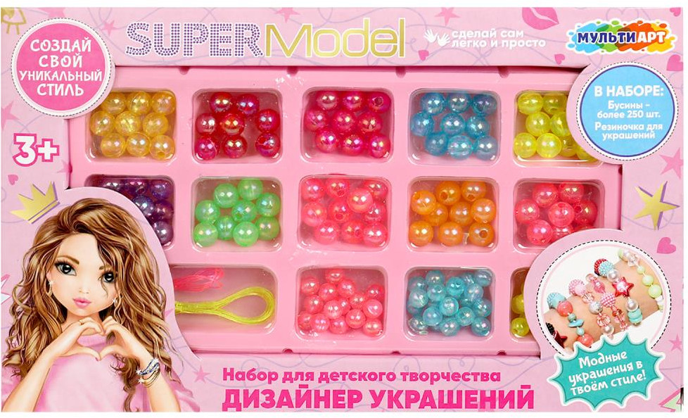 💳 Оплатить за товар можно при получении 🇰🇿 Есть бесплатная доставка по Казахстану от 1 дня 🎁 Копите бонусы с каждой покупки Набор для детского творчества «Дизайнер украшений. СуперМодель» ТМ «Мульти Арт» — отличный подарок для маленьких модниц. |