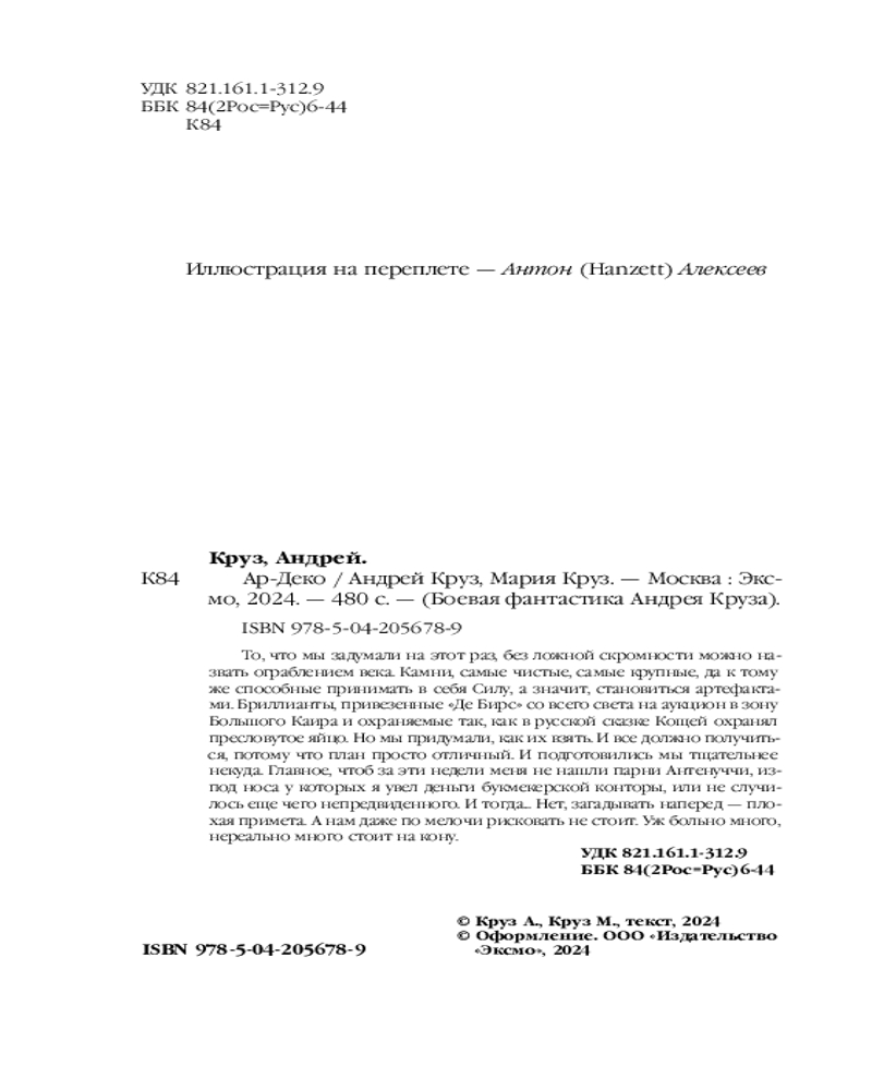 💳 Оплатить за товар можно при получении 🇰🇿 Есть бесплатная доставка по Казахстану от 1 дня 🎁 Копите бонусы с каждой покупки Серия: Боевая фантастика Андрея Круза То, что мы задумали на этот раз, без ложной скромности можно назвать ограблением века. Камни, самые чистые, самые крупные, да к тому же способные принимать в себя Силу, а значит, становиться артефактами. Бриллианты, привезенные «Де Бирс» со всего света на аукцион в зону Большого Каира и охраняемые так, как в русской сказке Кащей охранял пресловутое яйцо. Но мы придумали, как их взять. И все должно получиться, потому что план просто отличный. И подготовились мы тщательнее некуда. Главное, чтоб за эти недели меня не нашли парни Антенуччи, из-под носа у которых я увел деньги букмекерской конторы, или не случилось еще чего непредвиденного. И тогда... Нет, загадывать наперед — плохая примета. А нам даже по мелочи рисковать не стоит. Уж больно много, нереально много стоит на кону. |