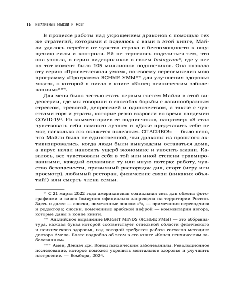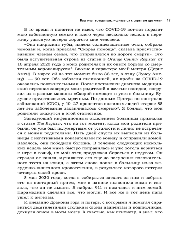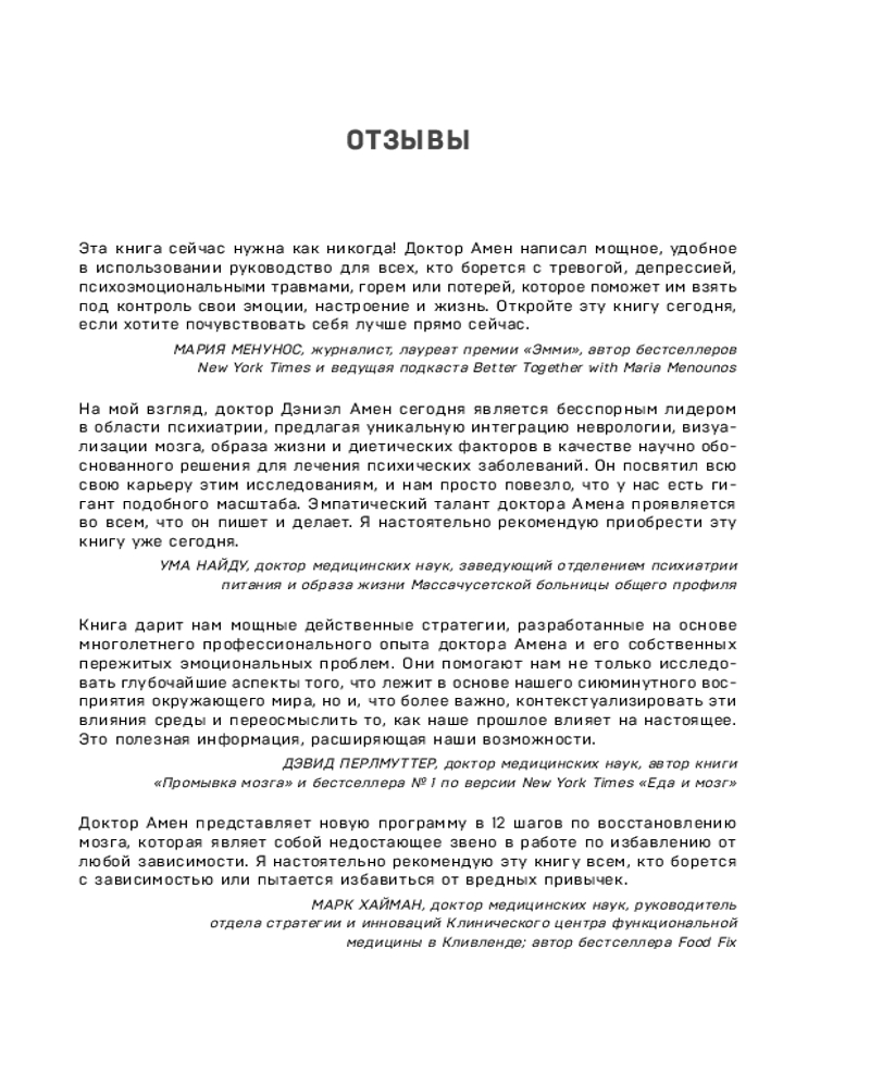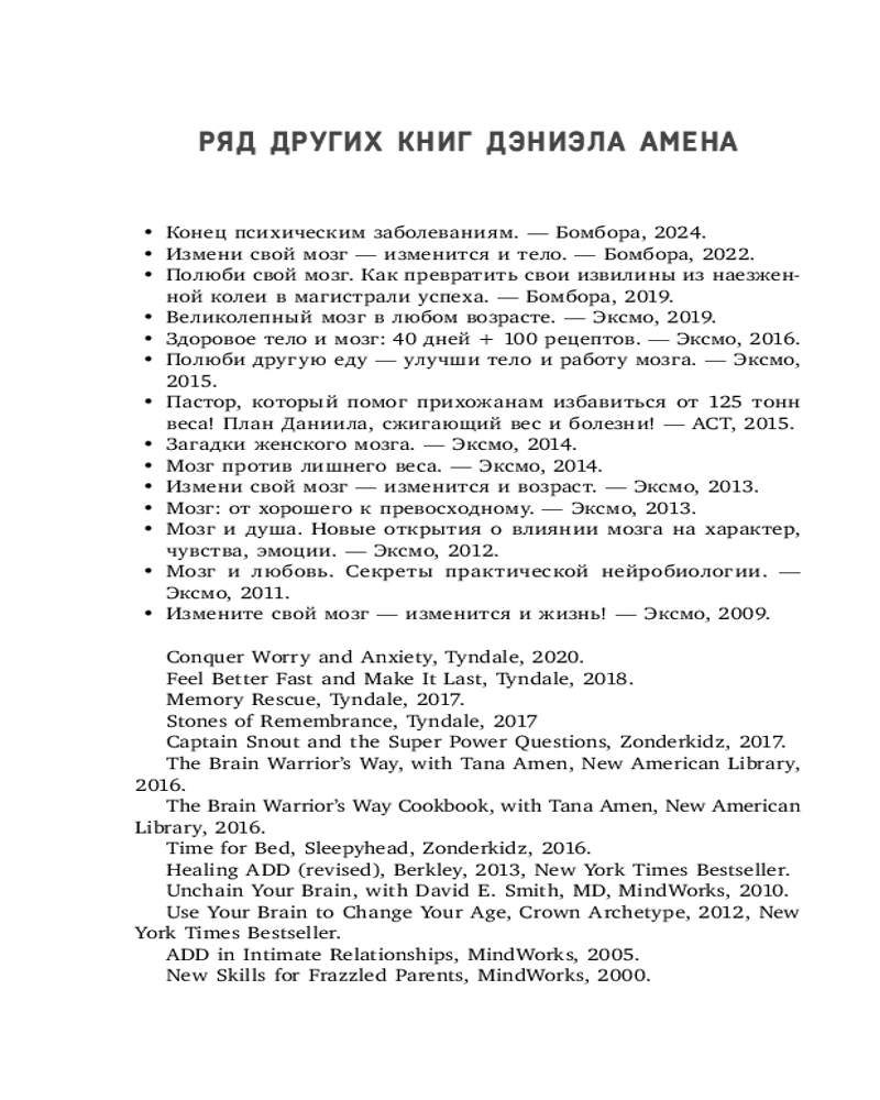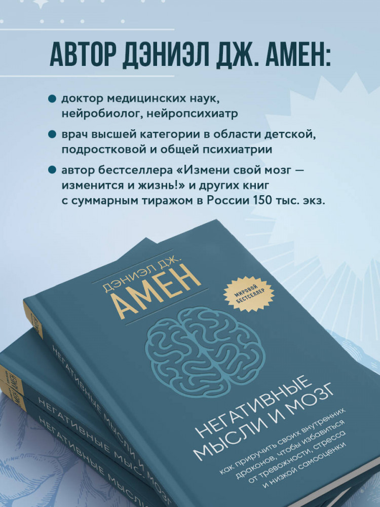 💳 Оплатить за товар можно при получении 🇰🇿 Есть бесплатная доставка по Казахстану от 1 дня 🎁 Копите бонусы с каждой покупки Серия: Психология и мозг по Амену (новое оформление) В этой книге один из ведущих в мире специалистов по мозгу и автор бестселлера «Измени свой мозг — изменится и жизнь!» доктор Дэниэл Дж. Амен научит справляться с негативными мыслями, нашими внутренними драконами, которые ежедневно портят жизнь. Вы узнаете, откуда они берутся и что приводит их в действие. Доктор Амен поделится действенными стратегиями, которые помогут вам перестать поддаваться неоправданному страху, почувствовать удовлетворение жизнью, избавиться от всех вредных привычек, твердо знать, чего вы хотите. И все это возможно, даже если у вас травмирующие переживания, сильный стресс или горе. Вы научитесь понимать себя и окружающих, построите крепкие отношения, обретете уверенность и спокойствие. В качестве бонуса — эффективные упражнения, психотерапевтические практики, аффирмации, медитации и списки фильмов для борьбы с каждым из своих внутренних драконов. |