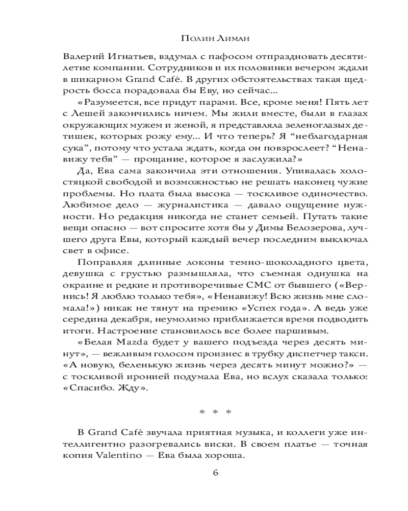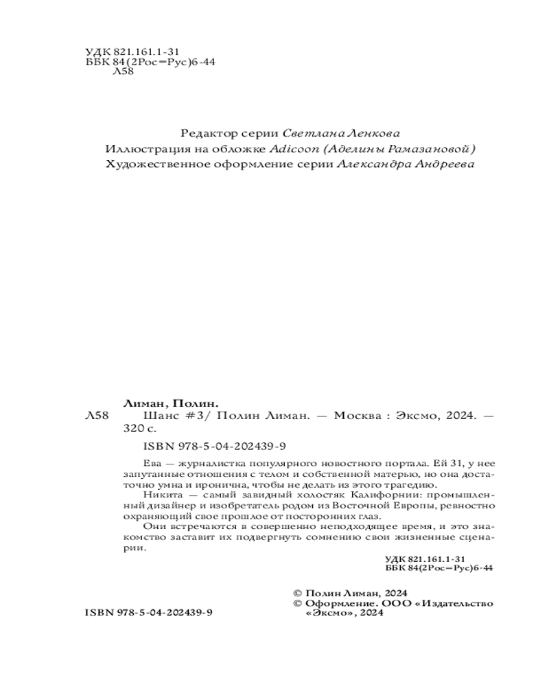 💳 Оплатить за товар можно при получении 🇰🇿 Есть бесплатная доставка по Казахстану от 1 дня 🎁 Копите бонусы с каждой покупки Серия: Романы для взрослых девочек Ева — журналистка популярного новостного портала. Ей 31, у нее запутанные отношения с телом и собственной матерью, но она достаточно умна и иронична, чтобы не делать из этого трагедию. Никита — самый завидный холостяк Калифорнии; промышленный дизайнер и изобретатель родом из Восточной Европы, ревностно охраняющий свое прошлое от посторонних глаз. Они встречаются в совершенно неподходящее время, и это знакомство заставит их подвергнуть сомнению свои жизненные сценарии. |