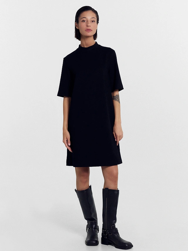 отличное трикотажное платье, трикотаж плотный, на лето будет жарковато, пошито без нареканий, село неплохо, большемерит, заявлено ог- 100, на самом деле 110, поэтому, как оверсайс, в целом отличное приобретение в гардероб