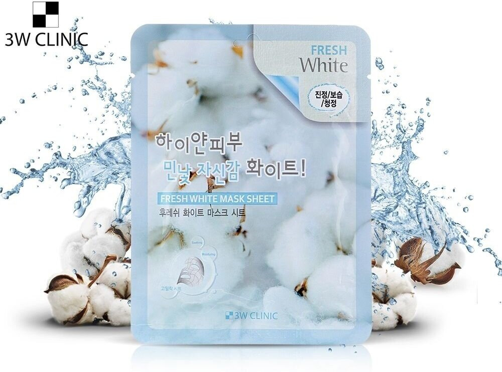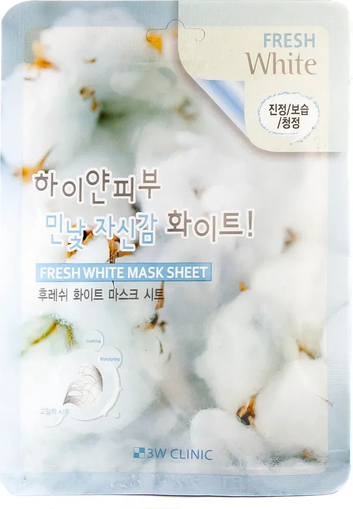3W CLINIC Маска тканевая для лица увлажняющая осветляющая с ниацинамидом «Fresh White Mask Sheet»