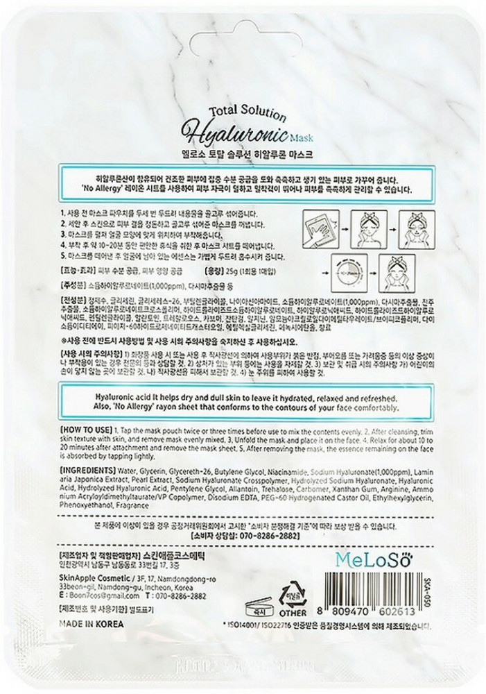 Dr.Meloso Маска для лица тканевая с гиалуроновой кислотой «Total Solution Hyaluronic Mask»