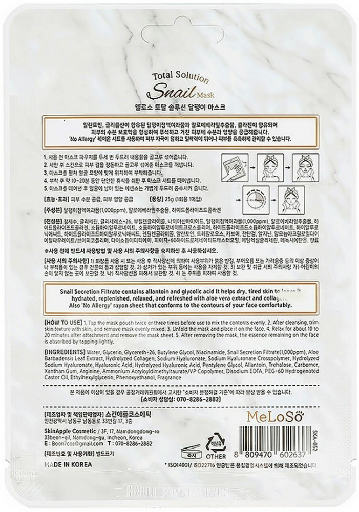 Dr.Meloso Маска для лица тканевая с муцином улитки «Total Solution Snail Mask»