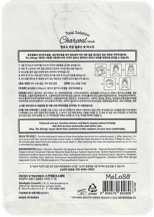 Dr.Meloso Маска для лица тканевая с экстрактом древесного угля «Total Solution Charcoal Mask»
