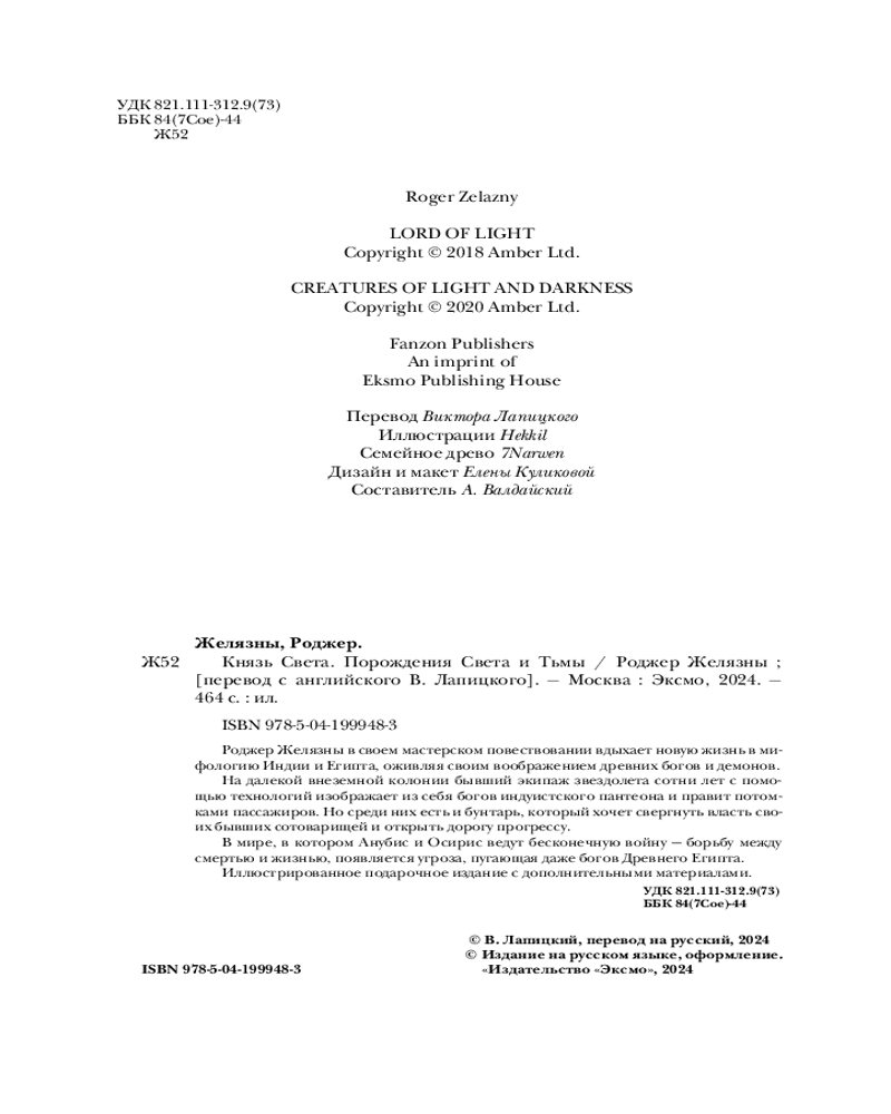 💳 Оплатить за товар можно при получении 🇰🇿 Есть бесплатная доставка по Казахстану от 1 дня 🎁 Копите бонусы с каждой покупки Серия: Fanzon. Миры Роджера Желязны с иллюстрациями Роджер Желязны в своем мастерском повествовании вдыхает новую жизнь в мифологию Индии и Египта, оживляя своим воображением древних богов и демонов. На далекой внеземной колонии бывший экипаж звездолета сотни лет с помощью технологий изображает из себя богов индуистского пантеона и правит потомками пассажиров. Но среди них есть и бунтарь, который хочет свергнуть власть своих бывших сотоварищей и открыть дорогу прогрессу. В мире, в котором Анубис и Осирис ведут бесконечную войну — борьбу между смертью и жизнью, появляется угроза, пугающая даже богов Древнего Египта. Иллюстрированное подарочное издание с дополнительными материалами. |