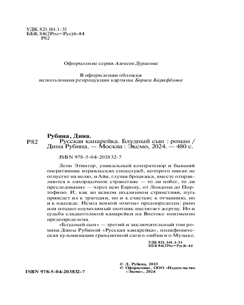 Серия: Большая проза Дины Рубиной (обложка) Леон Этингер, уникальный контратенор и бывший оперативник израильских спецслужб, которого никак не отпустят на волю, и Айя, глухая бродяжка, вместе отправляются в лихорадочное странствие — то ли побег, то ли преследование — через всю Европу, от Лондона до Портофино. И, как во всяком подлинном странствии, путь приведет их к трагедии, но и к счастью; к отчаянию, но и к надежде. Исход всякой «охоты» предопределен: рано или поздно неумолимый охотник настигает жертву. Но и судьба сладкоголосой канарейки на Востоке неизменно предопределена. «Блудный сын» — третий и заключительный том романа Дины Рубиной «Русская канарейка», полифоническая кульминация грандиозной саги о любви и о Музыке. |